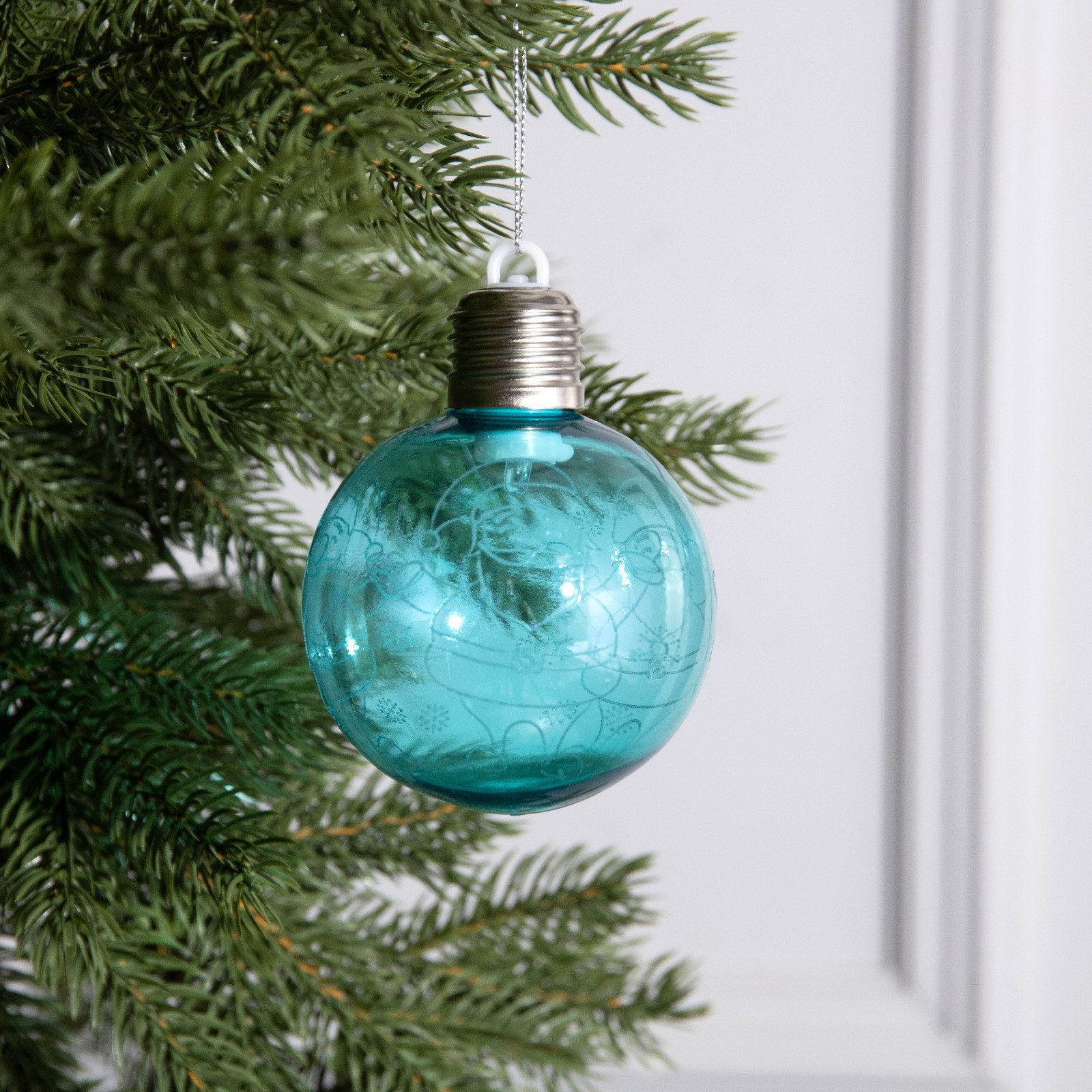 Ёлочный шар "Дед Мороз" голубой, батарейки, 1 LED, свечение тёплое белое, 8x8x8 см., Luazon Lighting, Китай