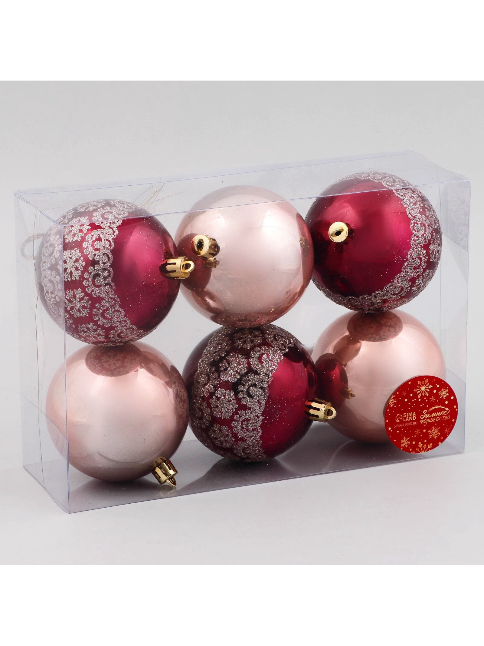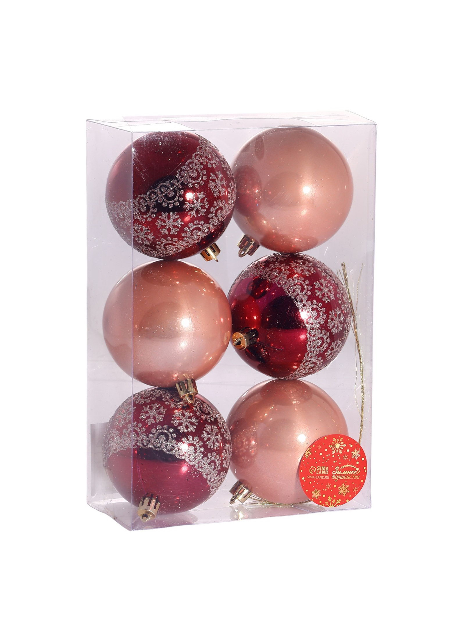 Ёлочные игрушки "Ночка", d=8 см, 6 шт., цветы узор, бордовый/золотистый, 8x8 см., Зимнее волшебство, Китай