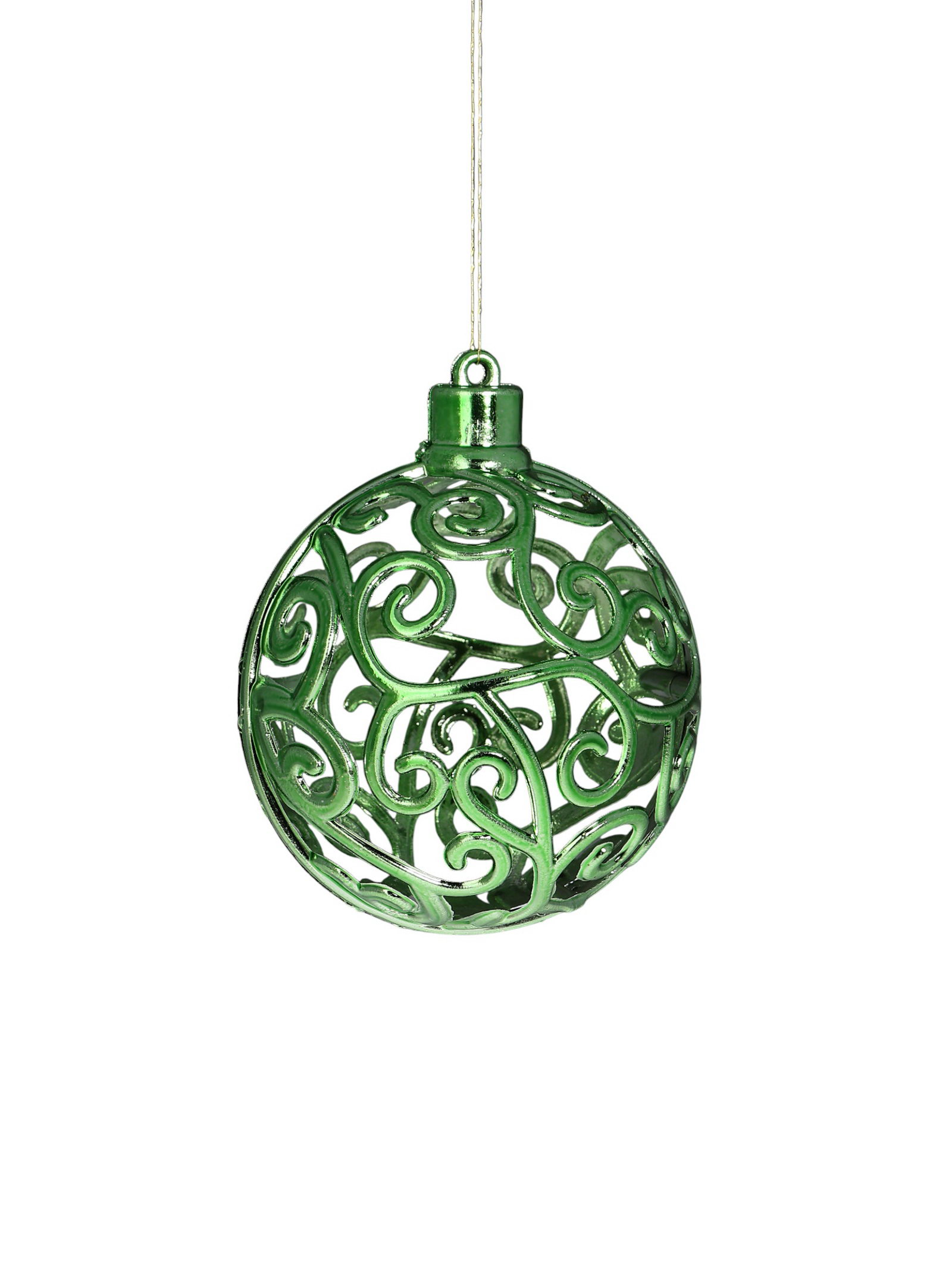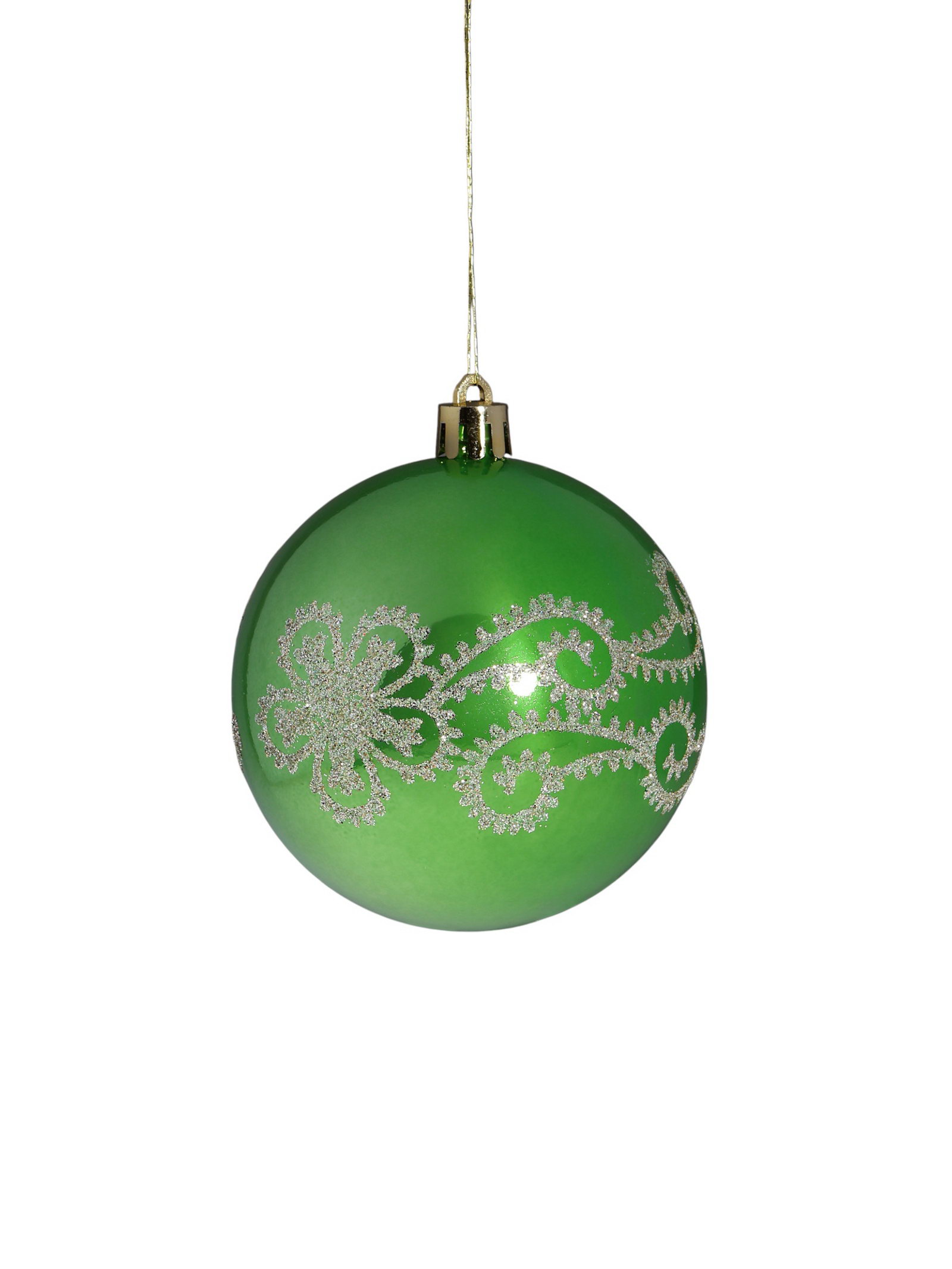 Ёлочные игрушки "Эстер", шары новогодние, набор d=8 см, 6 шт., узор, зелёный, 8x8 см., Зимнее волшебство, Китай