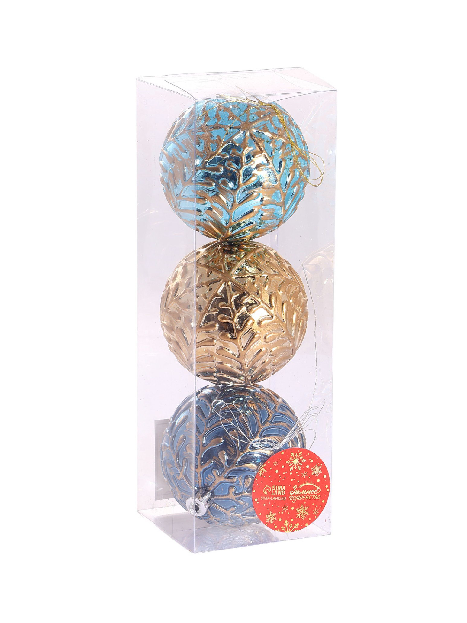 Ёлочные игрушки "Мадлен" веточки, шары новогодние, набор d=8 см, 3 шт., МИКС, 8x8 см., Зимнее волшебство, Китай