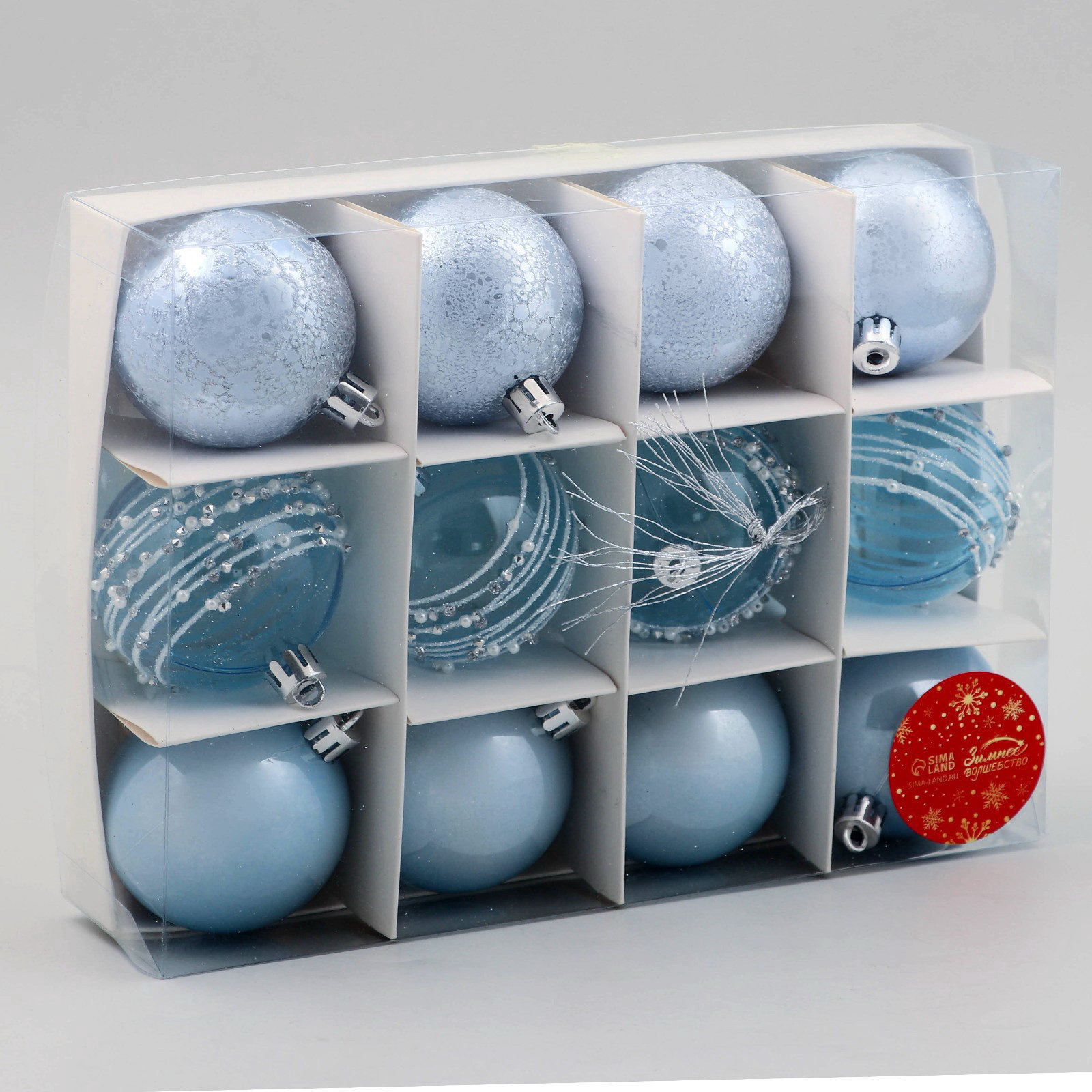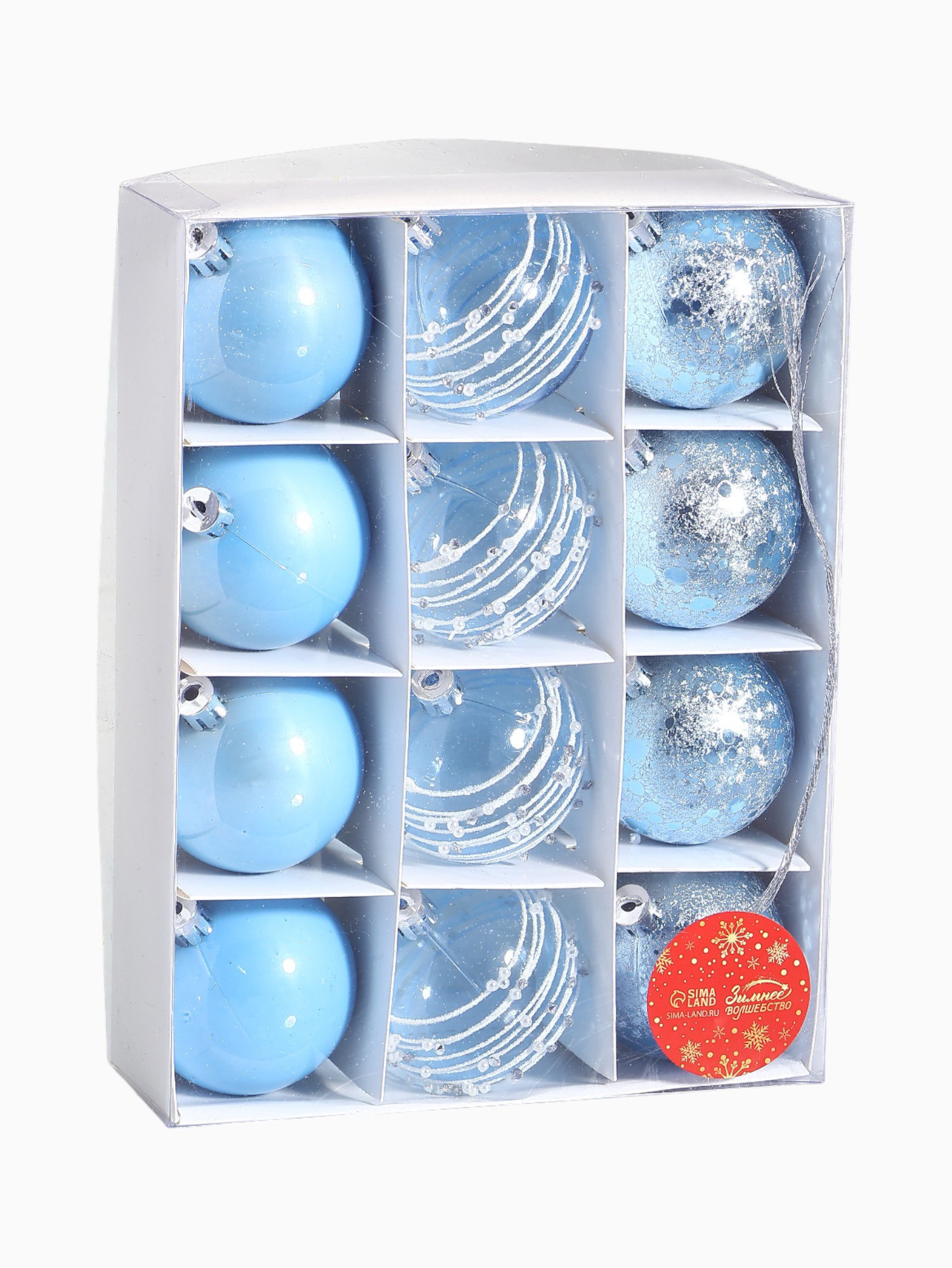 Ёлочные игрушки "Сказочные узоры", шары новогодние, d=6 см, набор 12 шт., орбита, голубой, 6x6 см., Зимнее волшебство, Китай
