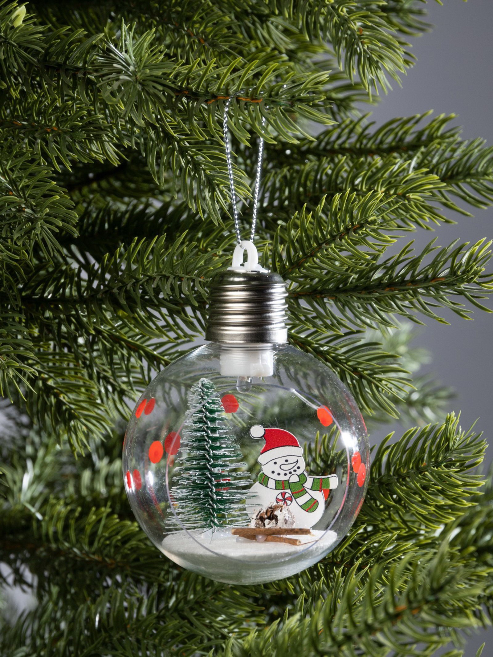Особенности: Прозрачная, С наполнением, Со светодиодами Размер упаковки: 8 x 6.5 x 10 см. Размер упаковки: 8 x 6.5 x 10 см. tnved: 9505109000 Гарантийный срок, мес.: 6 Количество светодиодов: 1 Тип питания: От батареек Тематика праздника: Новый год Цвет свечения: Тёплый белый Количество батареек: 3 Типоразмер батареек: LR44 (V13GA, AG13, LR1154, SR44) Цвет: Прозрачный Форма игрушки: Шар Символ года: Нет Диаметр шара, см: 8 Набор: Нет Стиль: Скандинавский Прозрачный ёлочный шар диаметром 8 см с изображением снеговика и ёлочки это гармоничное сочетание традиционной новогодней символики и современного скандинавского дизайна. Использование пластика и металла обеспечивает лёгкость и надёжность конструкции, а наполнение внутри шара придаёт изделию выразительный объём и глубину. Встроенный светодиод с тёплым белым свечением мягко озаряет игрушку изнутри, создавая атмосферу уюта и волшебства. Питание от трёх батареек LR44 гарантирует автономность и удобство размещения без проводов, что позволяет легко интегрировать шар в любой праздничный интерьер.