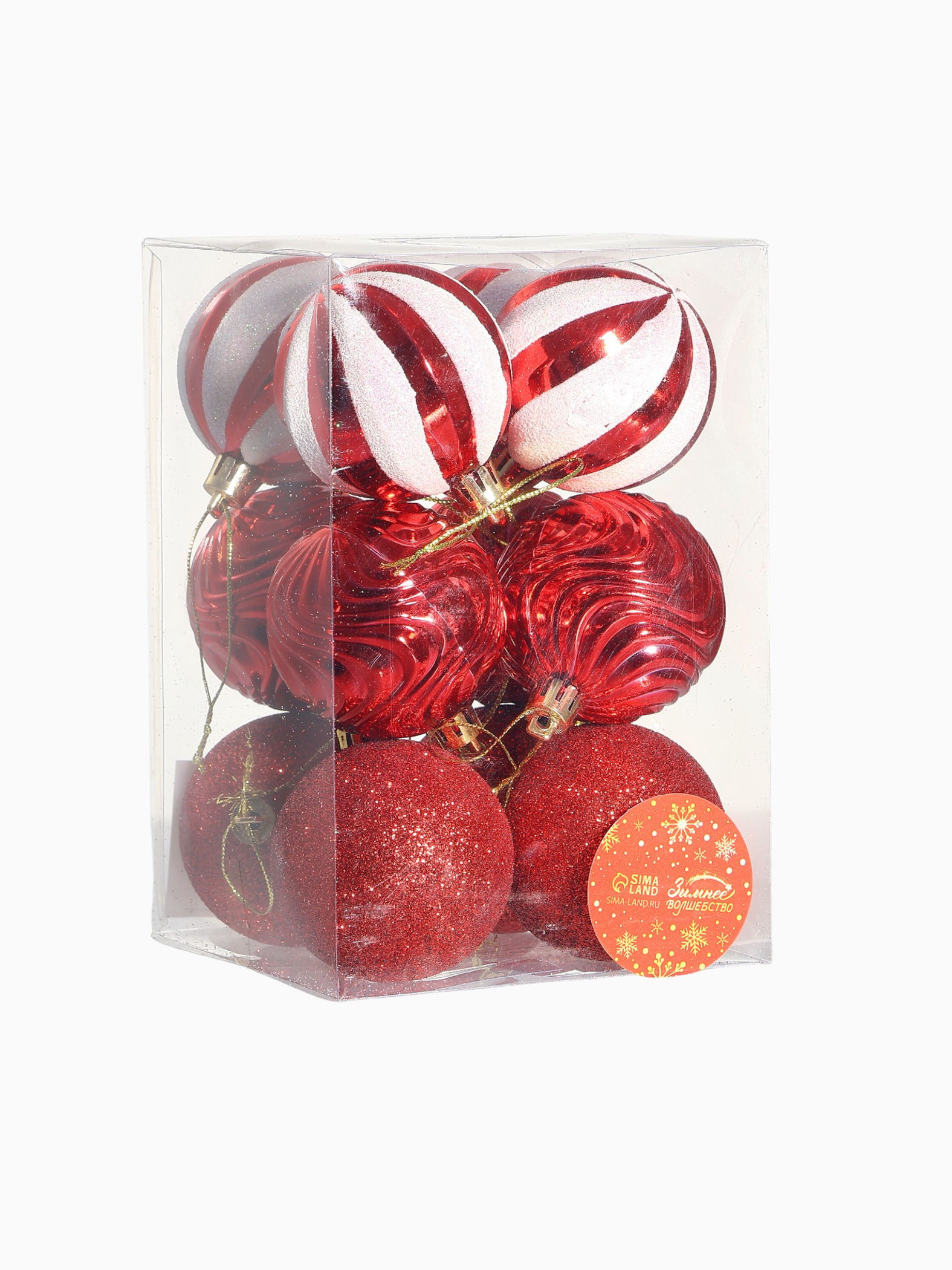 Ёлочные игрушки "Мелодия", d=6 см, набор 12 шт., полосы, бело-красный, 6x6 см., Зимнее волшебство, Китай
