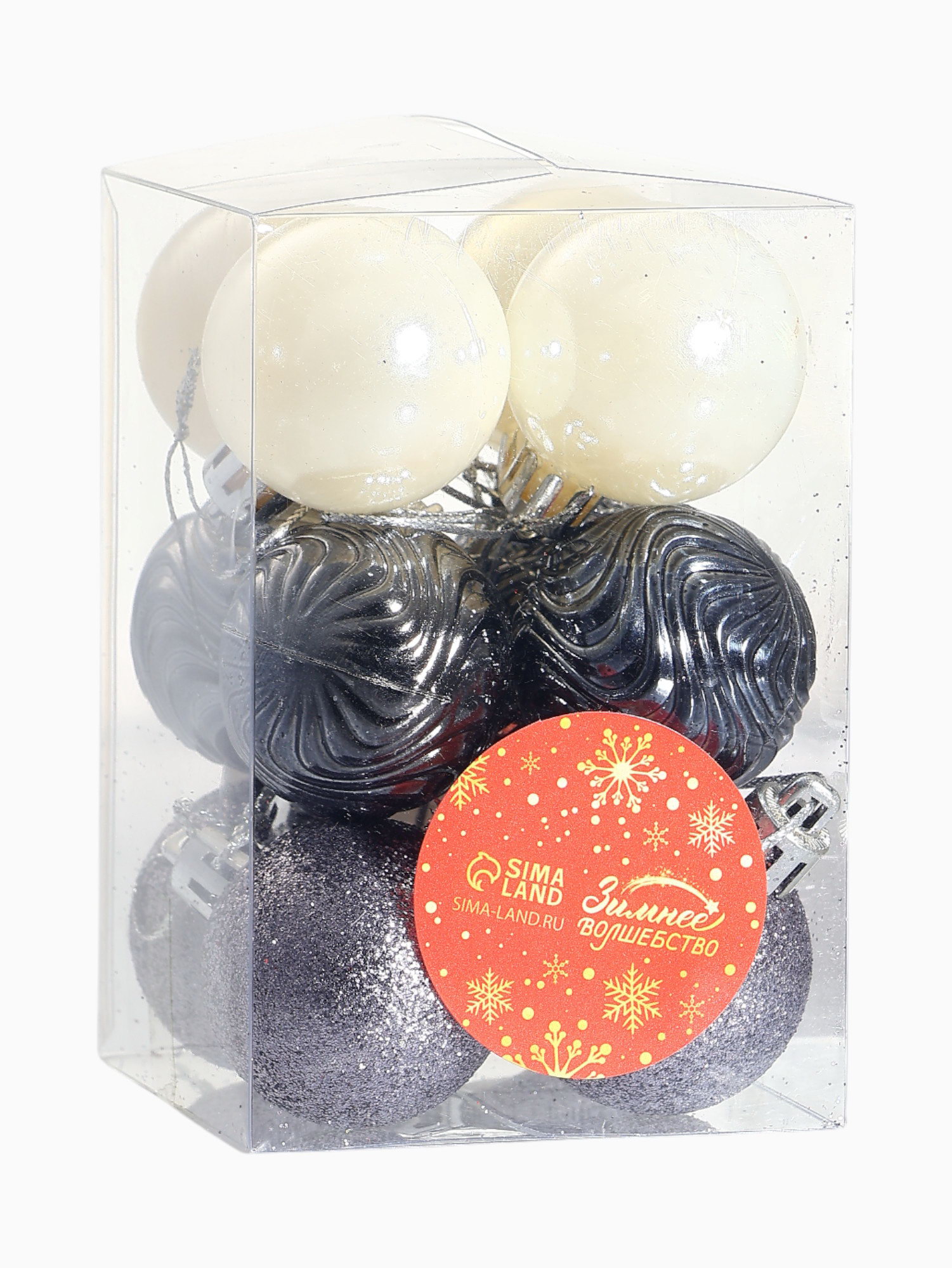 Ёлочные игрушки "Мелодия", шары новогодние, d=4 см, набор 12 шт., белый/серый, 4x4 см., Зимнее волшебство, Китай