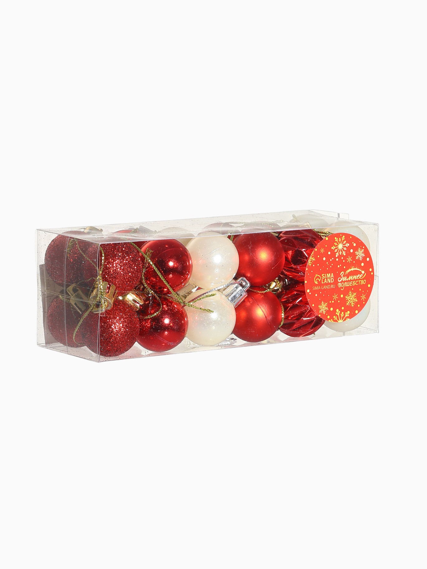 Ёлочные игрушки "Мелодия" грани, d=3 см, набор 24 шт., белый/красный, 3x3 см., Зимнее волшебство, Китай