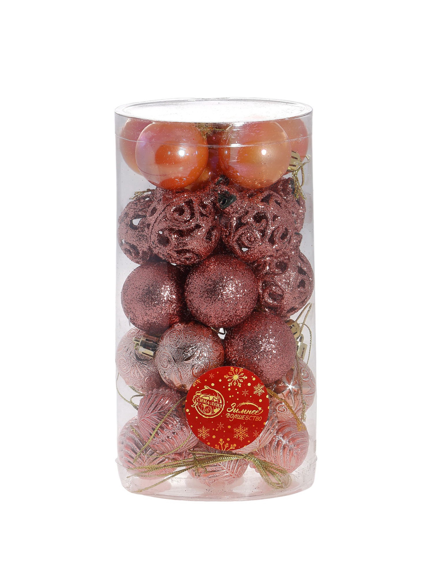 Ёлочные игрушки "Мелодия", шары новогодние, d=4 см, набор 30 шт., орнамент, розовый, 4x4 см., Зимнее волшебство, Китай
