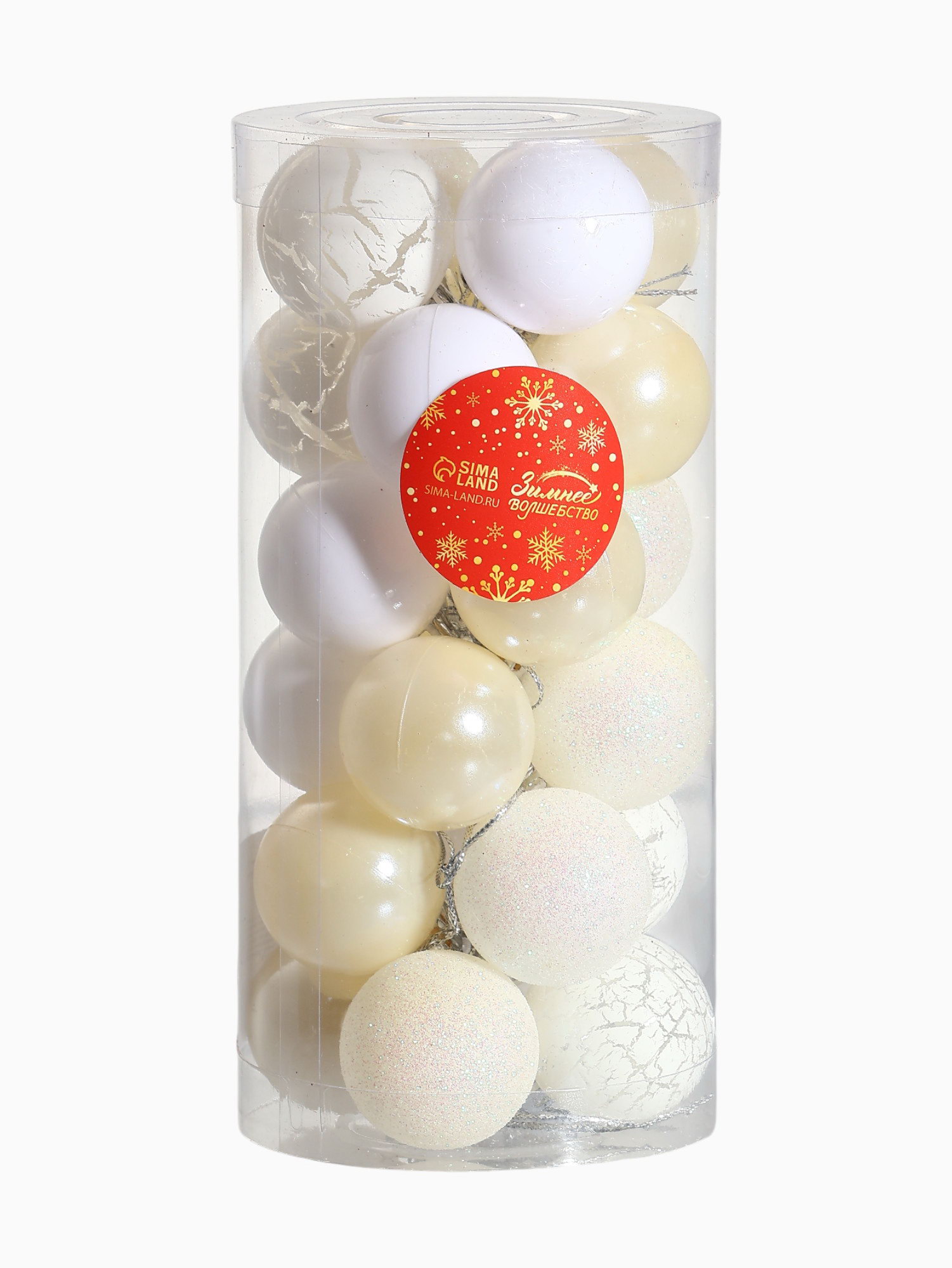 Ёлочные игрушки "Снег", шары новогодние, набор 24 шт., d=4 см, белый, 4x4 см., Зимнее волшебство, Китай