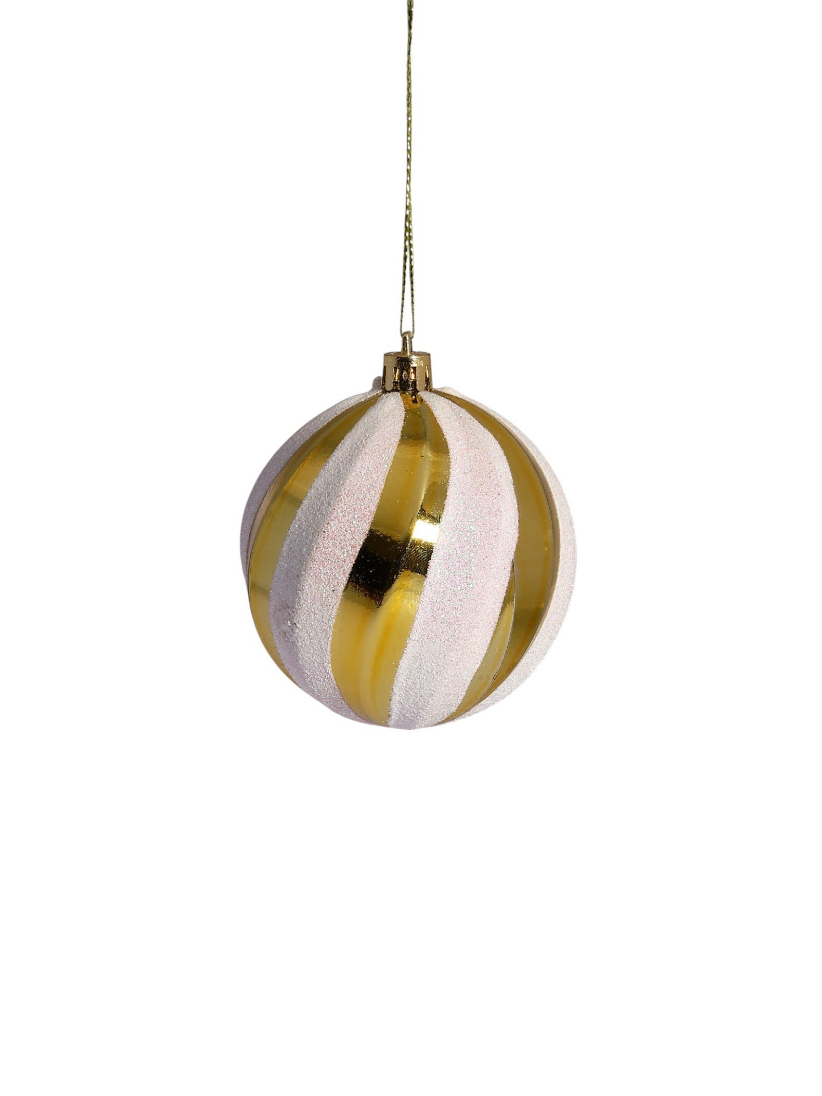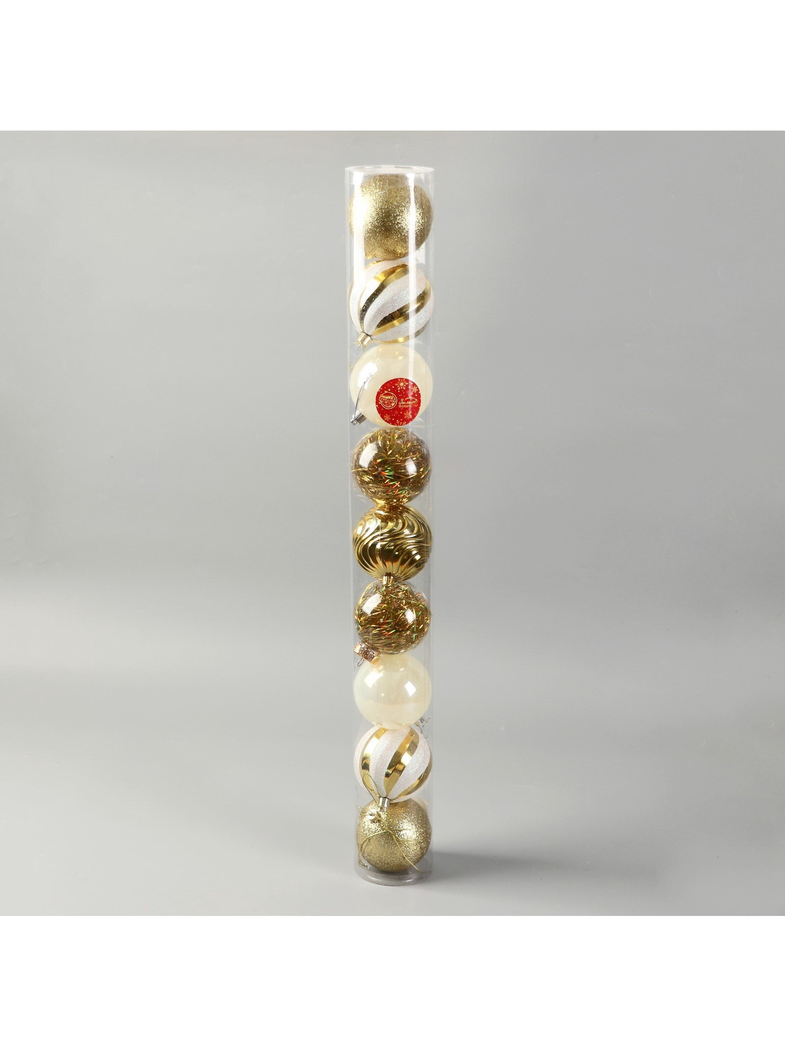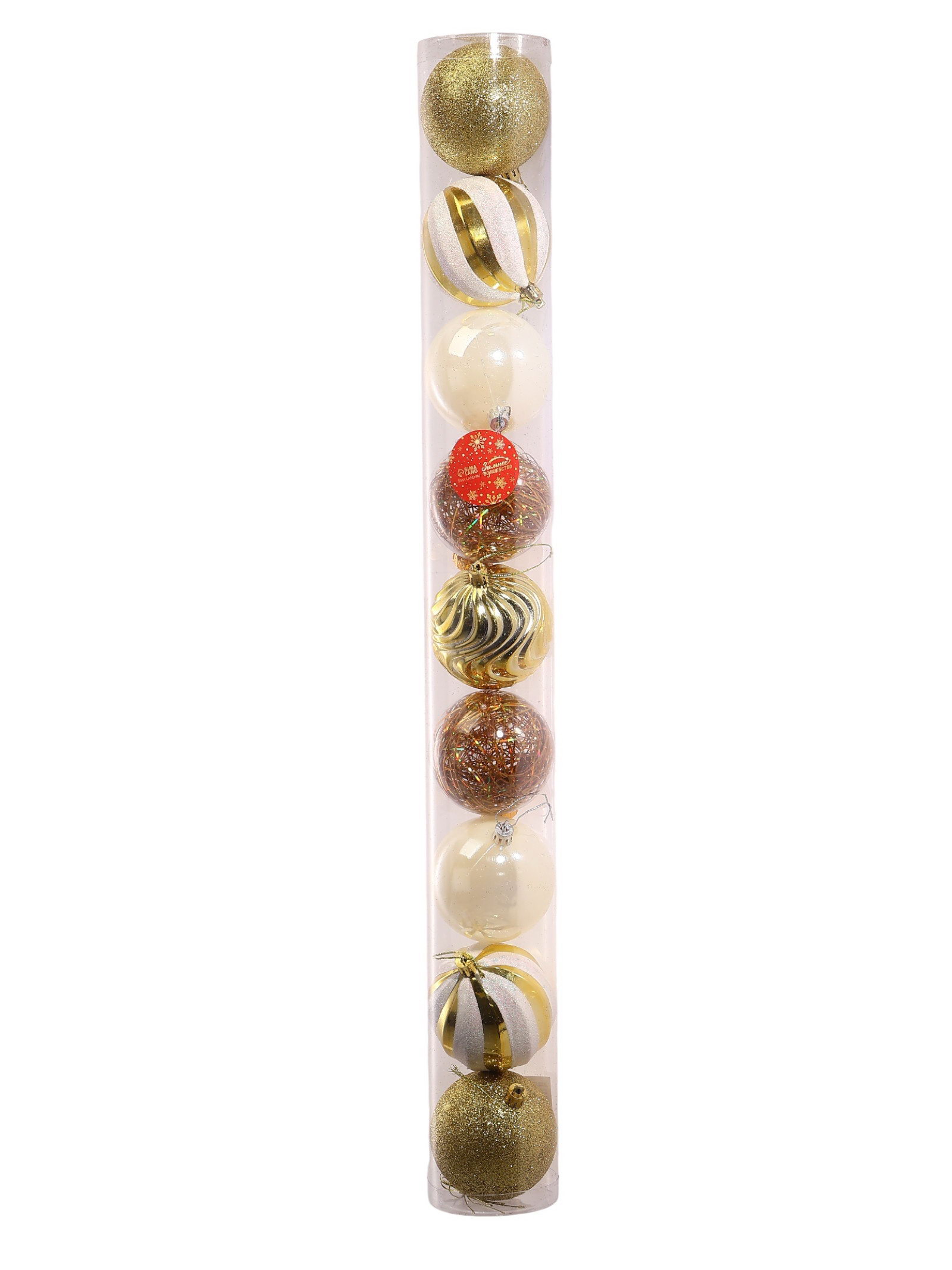 Ёлочные игрушки "Мелодия", шары новогодние, d=8 см, набор 9 шт., полосы, бело-золотой, 8x8 см., Зимнее волшебство, Китай