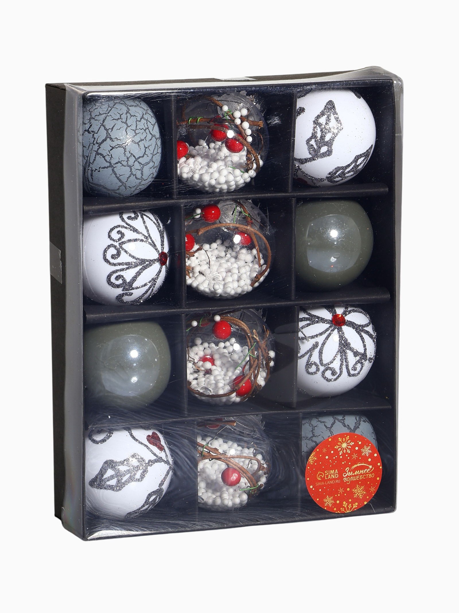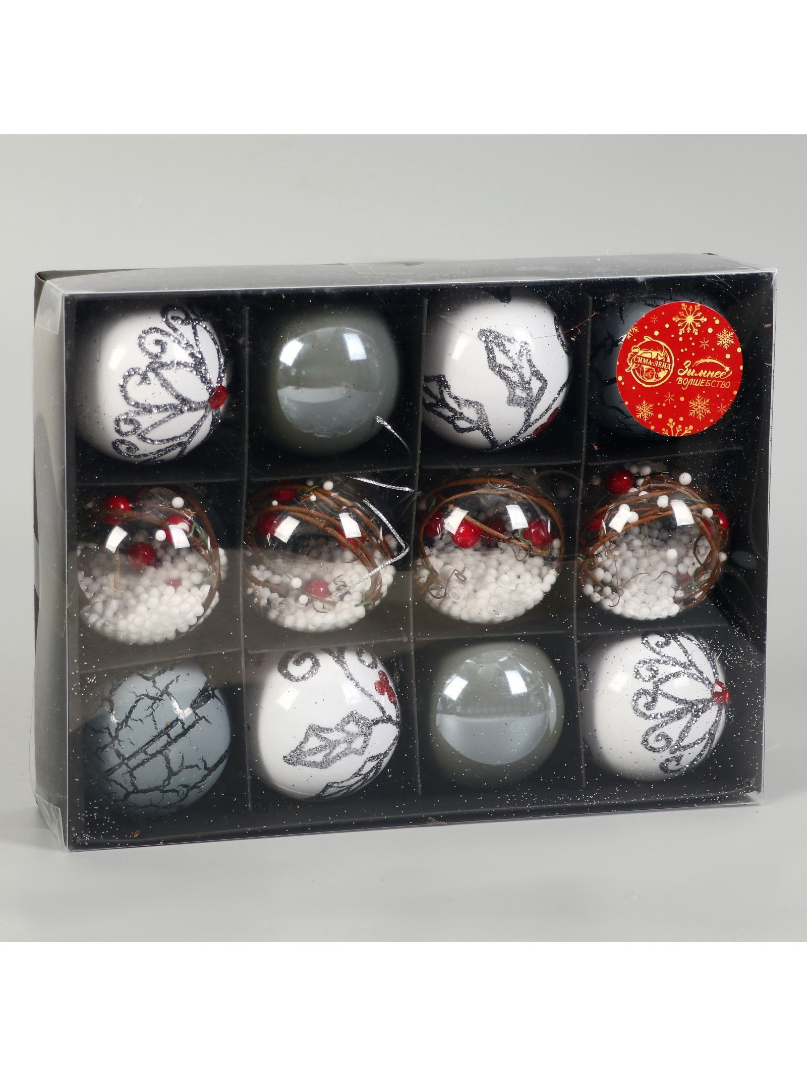 Ёлочные игрушки "Мелодия", шары новогодние, d=6 см, набор 12 шт., ассорти, белый серый, 6x6 см., Зимнее волшебство, Китай