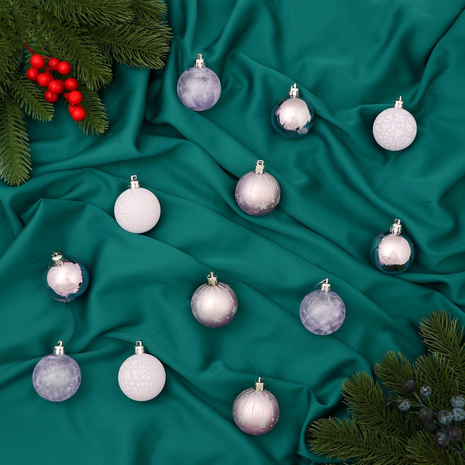 Ёлочные игрушки "Морозная ночь", шары новогодние, d=5 см, набор 12 шт., сиреневый, 5x5 см., Зимнее волшебство, Китай