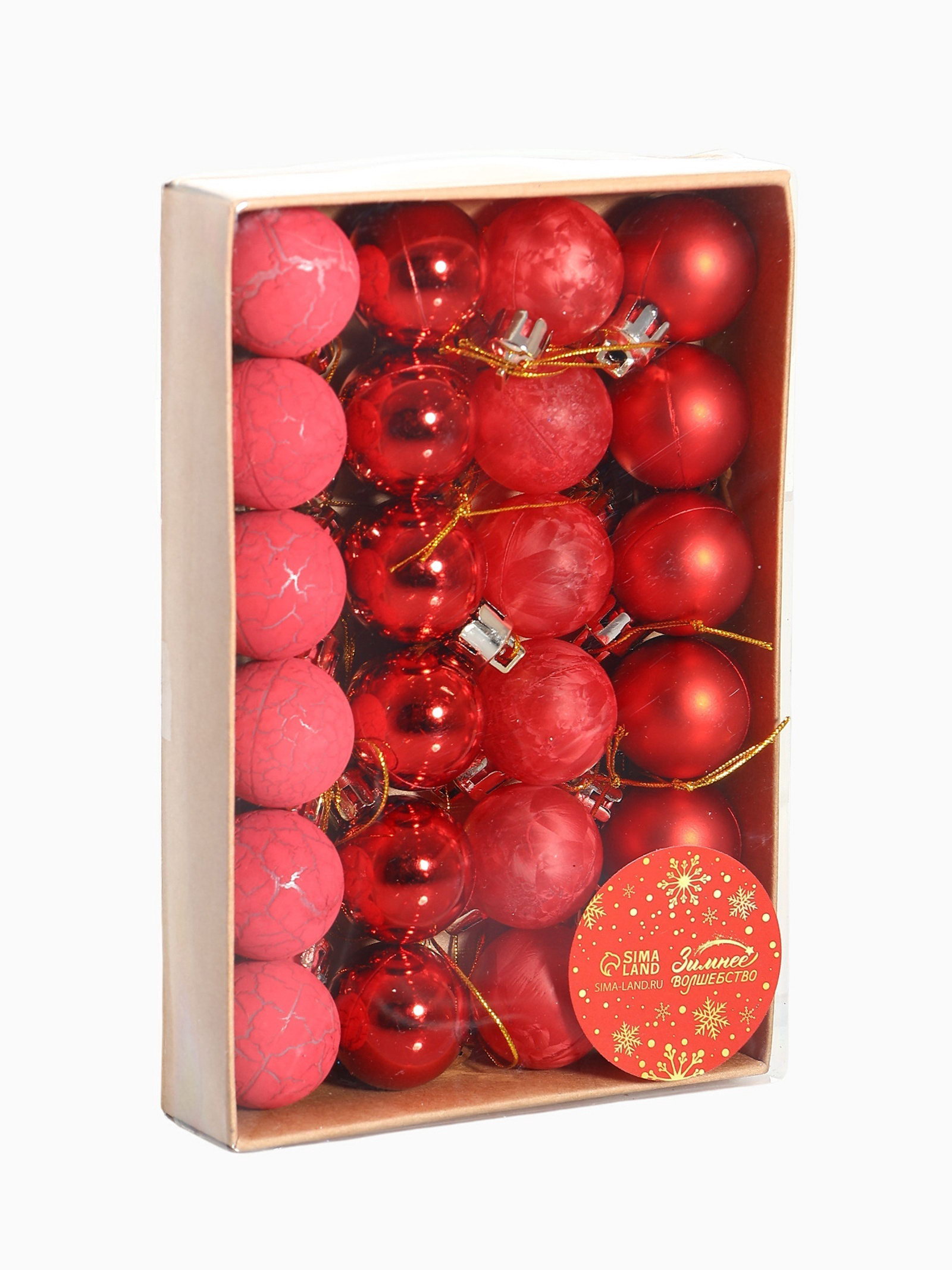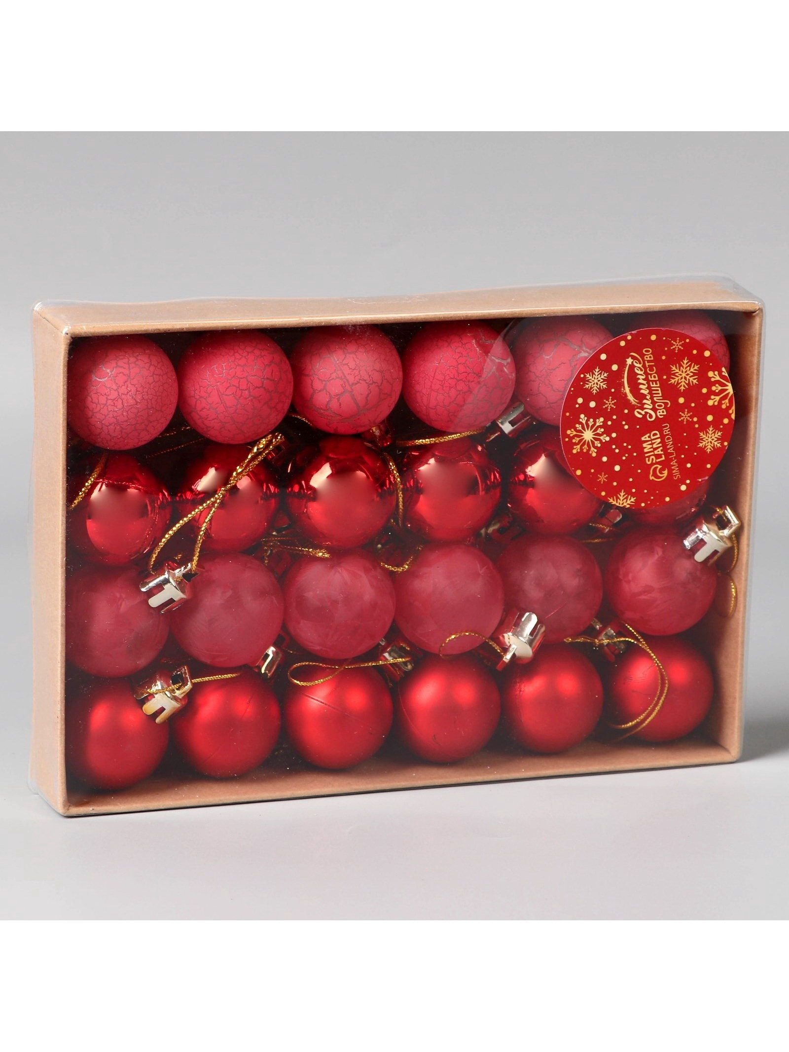 Ёлочные игрушки "Традиция", шары новогодние, d=3 см, набор 24 шт., треск, красный, 3x3 см., Зимнее волшебство, Китай