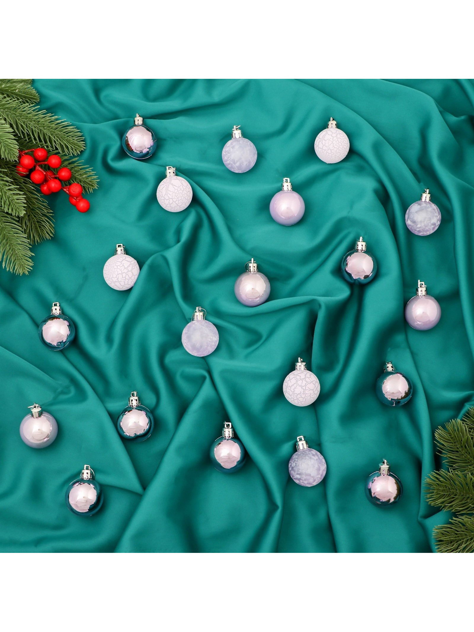 Ёлочные игрушки "Традиция" шары новогодние, d=4 см, 20 шт., треск, сиреневый, 4x4 см., Зимнее волшебство, Китай