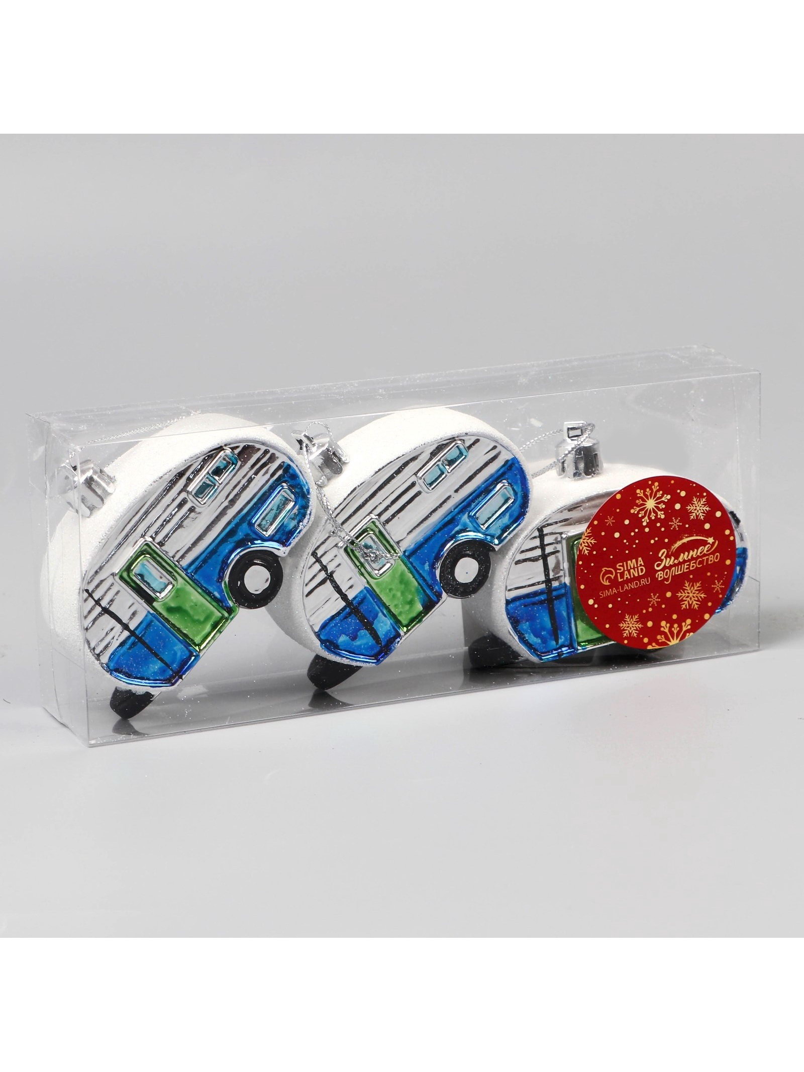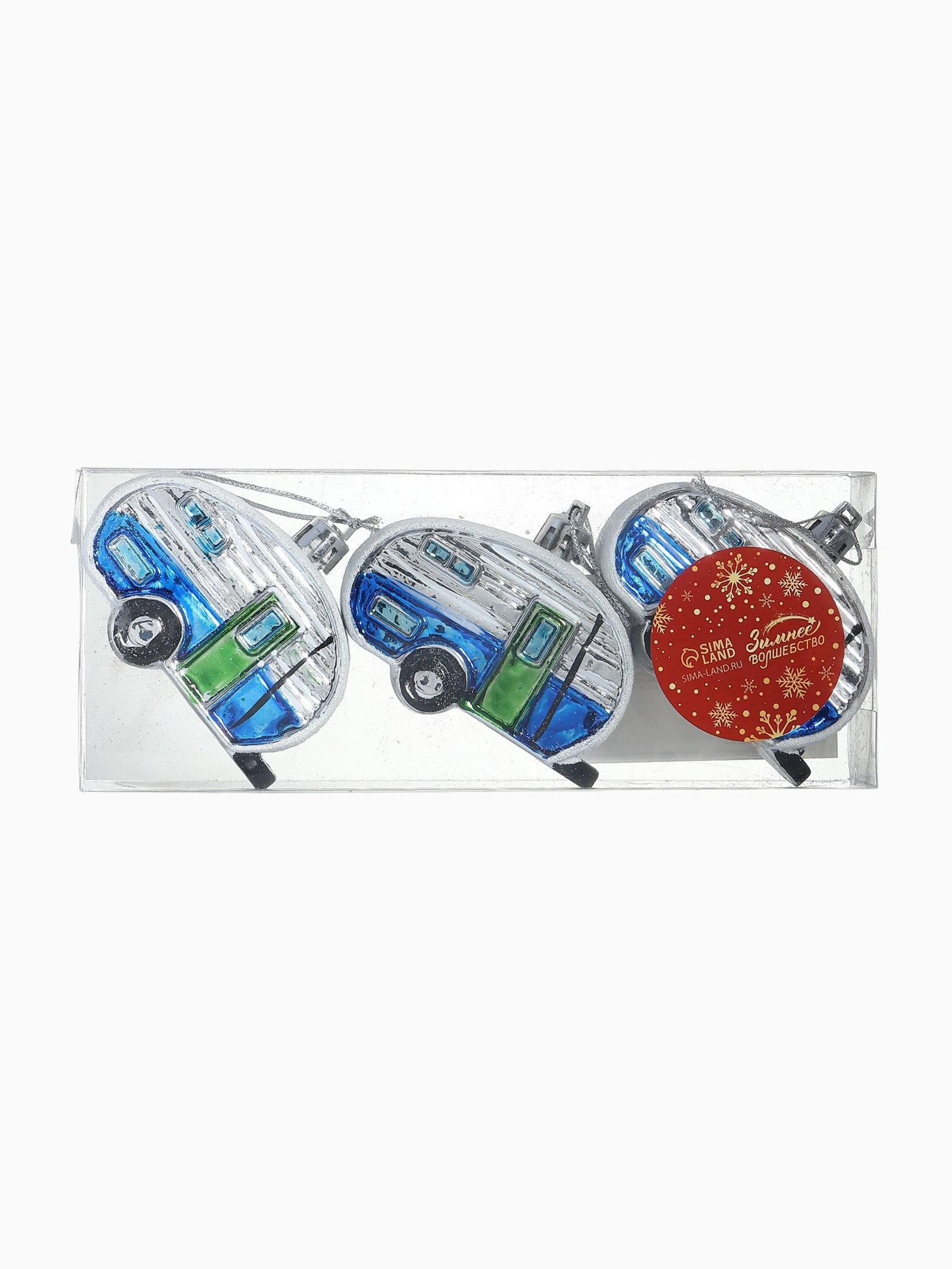 Ёлочные игрушки 3 шт., "Фургончики" пластик, 4x7 см, синий, 4x7 см., Зимнее волшебство, Китай