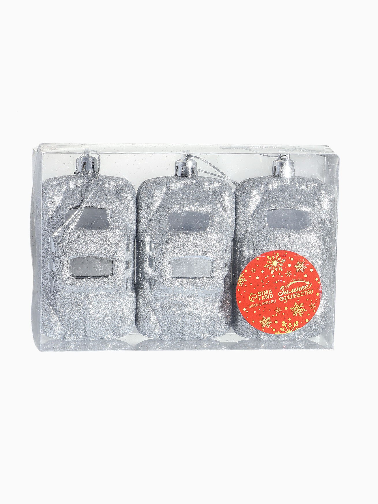 Ёлочные игрушки 3 шт., "Машинки" пластик, 9x3.5 см, серебро, 9x3.5 см., Зимнее волшебство, Китай