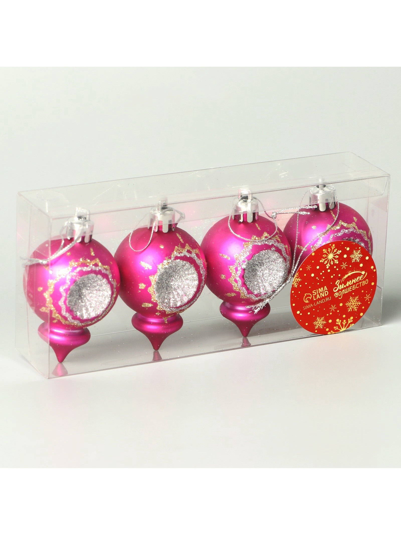 Ёлочные игрушки набор 4 шт. "Огонёк" 4x6 см, розовый, 4x6 см., Зимнее волшебство, Китай