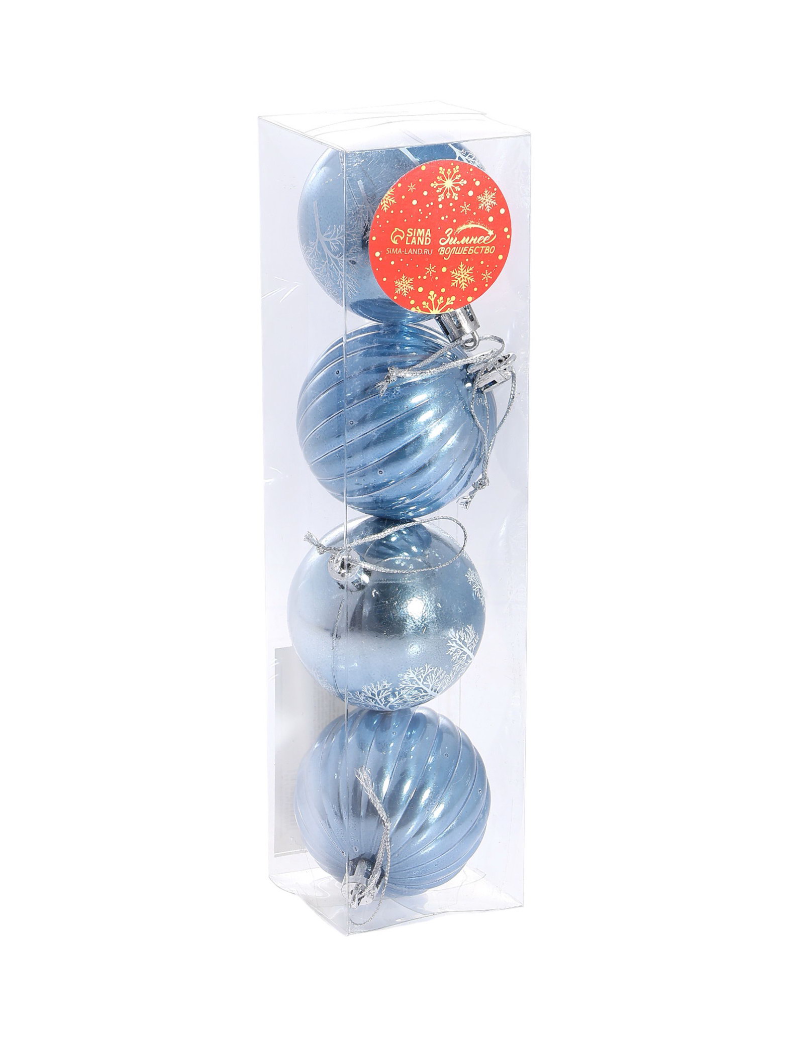 Ёлочные игрушки "Новогодние забавы", шары новогодние, d=5.5 см, набор 4 шт., полосы, голубой, 5.5x5.5 см., Зимнее волшебство, Китай