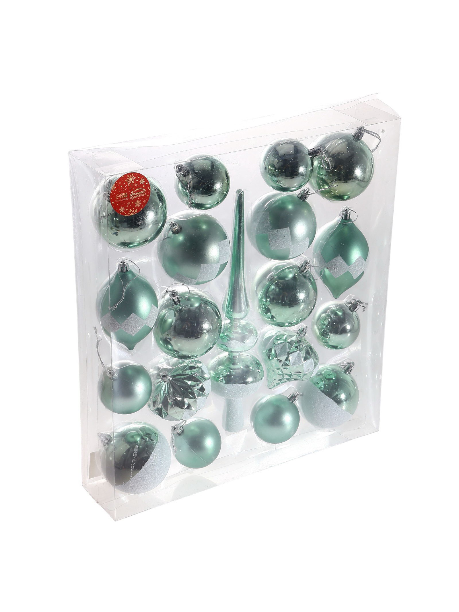 Ёлочные игрушки "Льдинки", шары новогодние, набор 19 шт., зелёный, 36x8x40 см., Зимнее волшебство, Китай