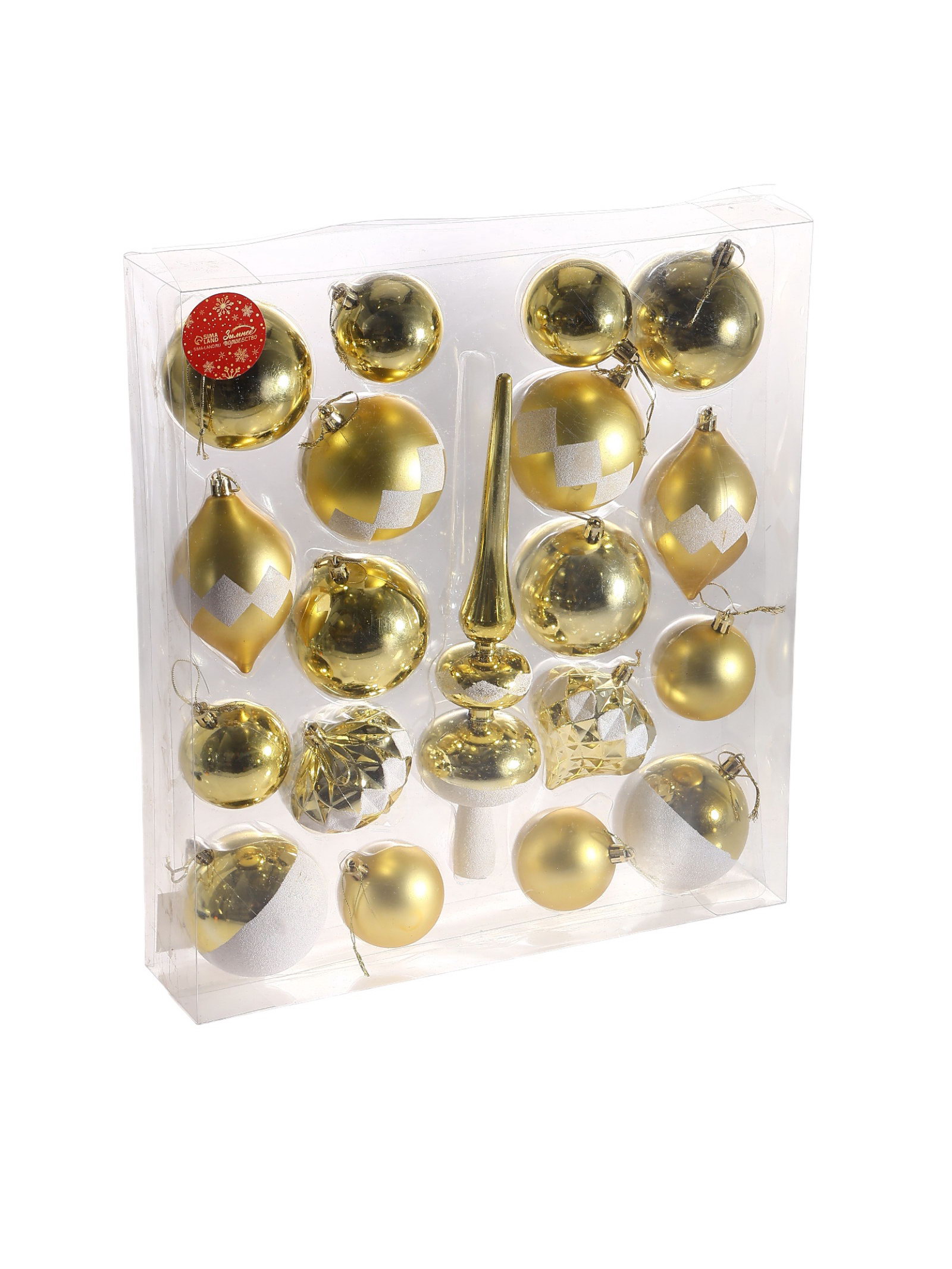 Ёлочные игрушки "Льдинки", новогодние, набор 19 шт., бело-золотой, 36x8x40 см., Зимнее волшебство, Китай