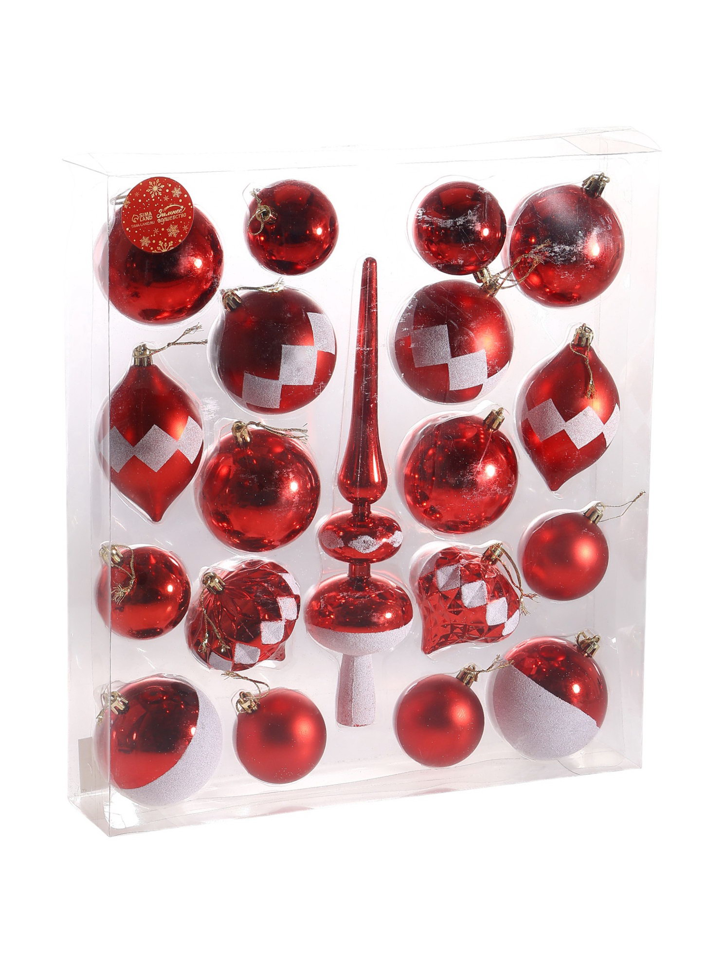 Ёлочные игрушки "Льдинки", новогодние, набор 19 шт., красно-золотой, 36x8x40 см., Зимнее волшебство, Китай