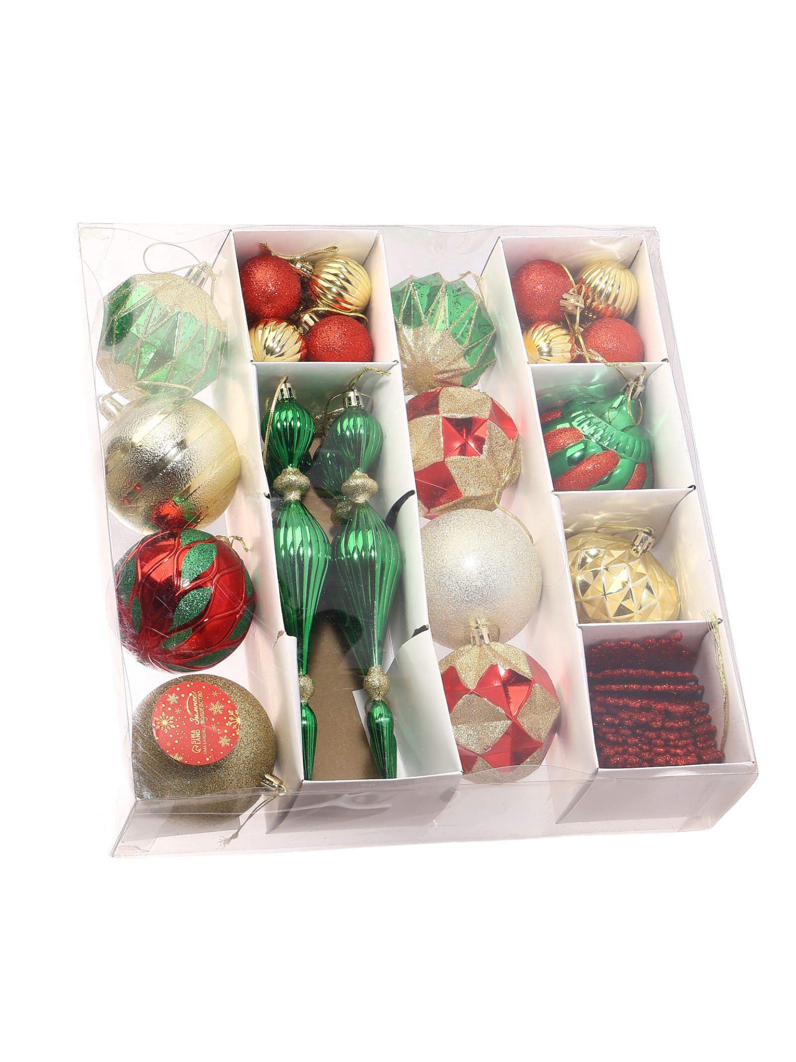 Ёлочные игрушки "Ассорти", новогодние, набор 42 шт., красный/зелёный, 32x8x33 см., Зимнее волшебство, Китай