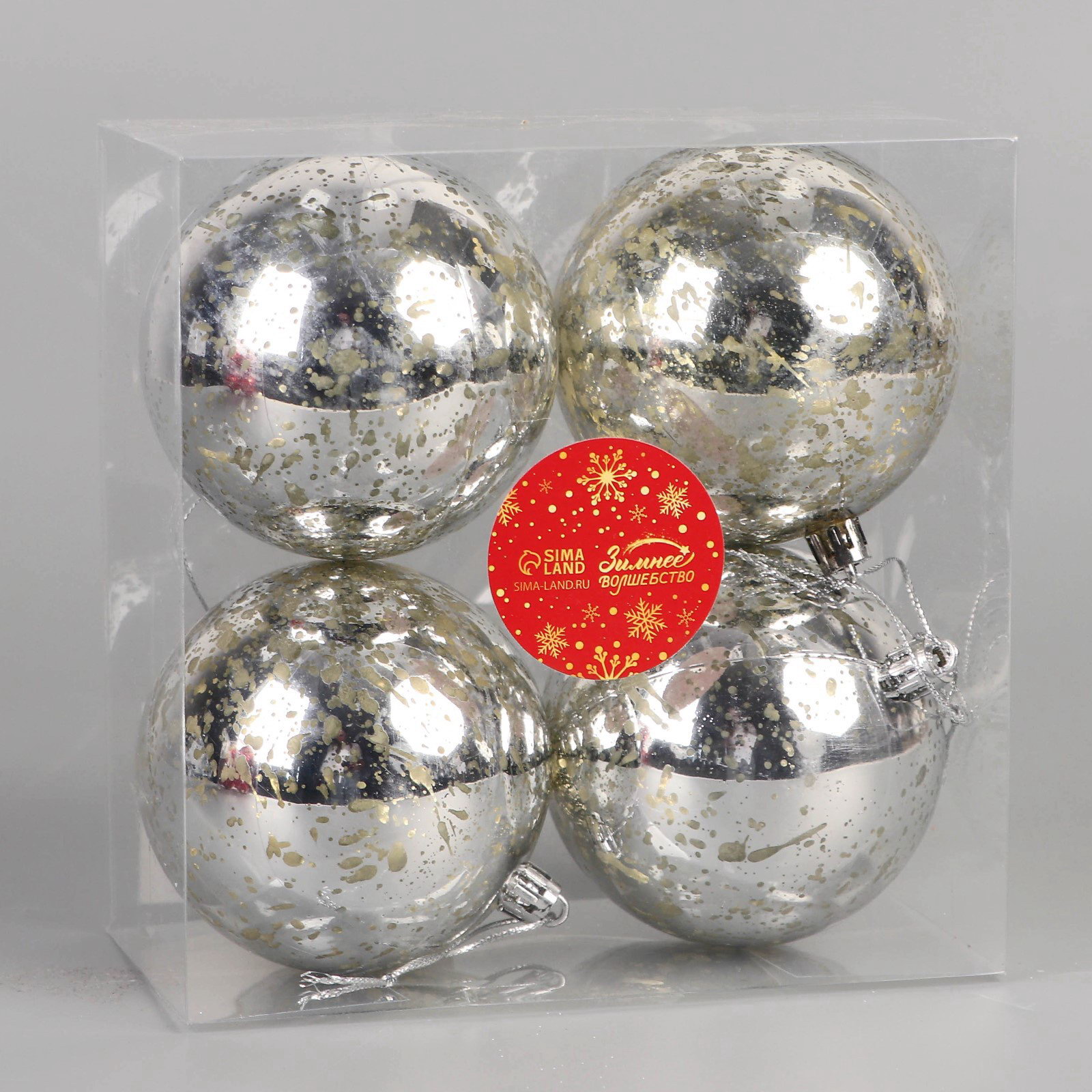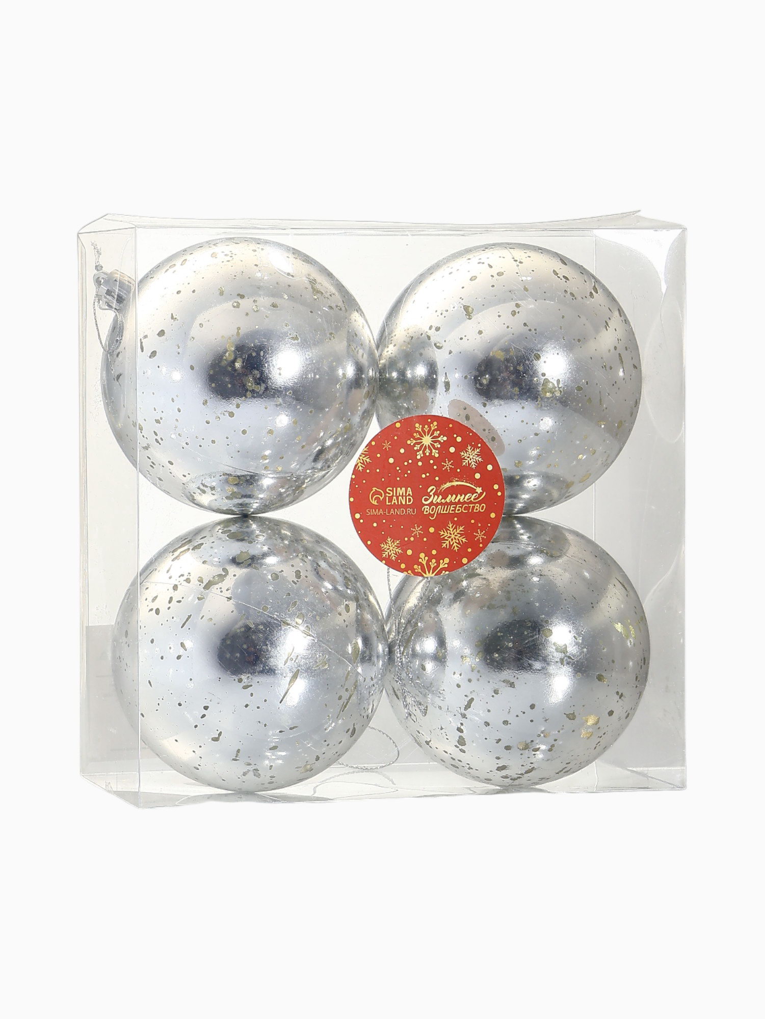 Ёлочные игрушки "Винтаж", шары новогодние, d=8 см, набор 4 шт., серебро, 8x8 см., Зимнее волшебство, Китай