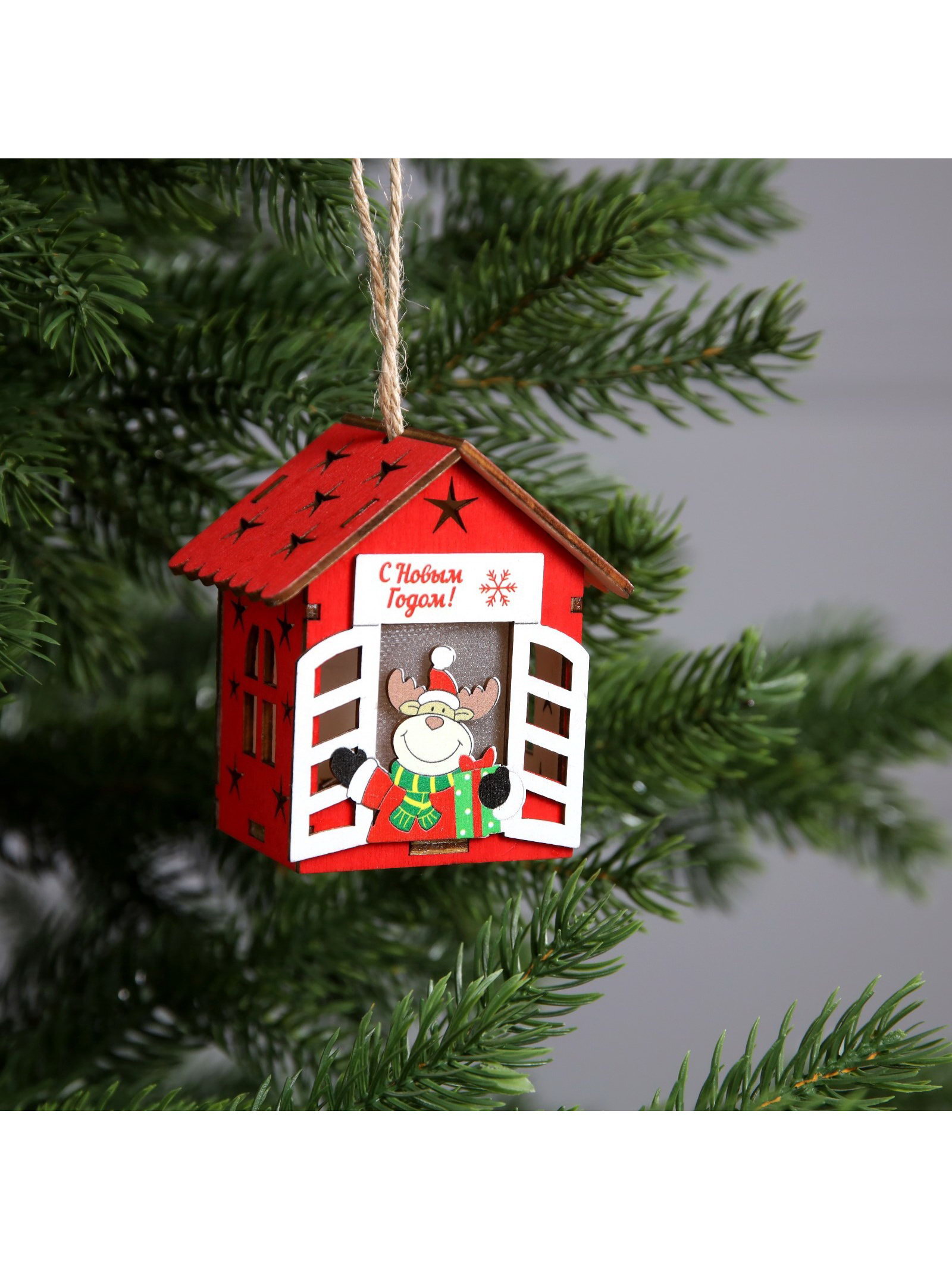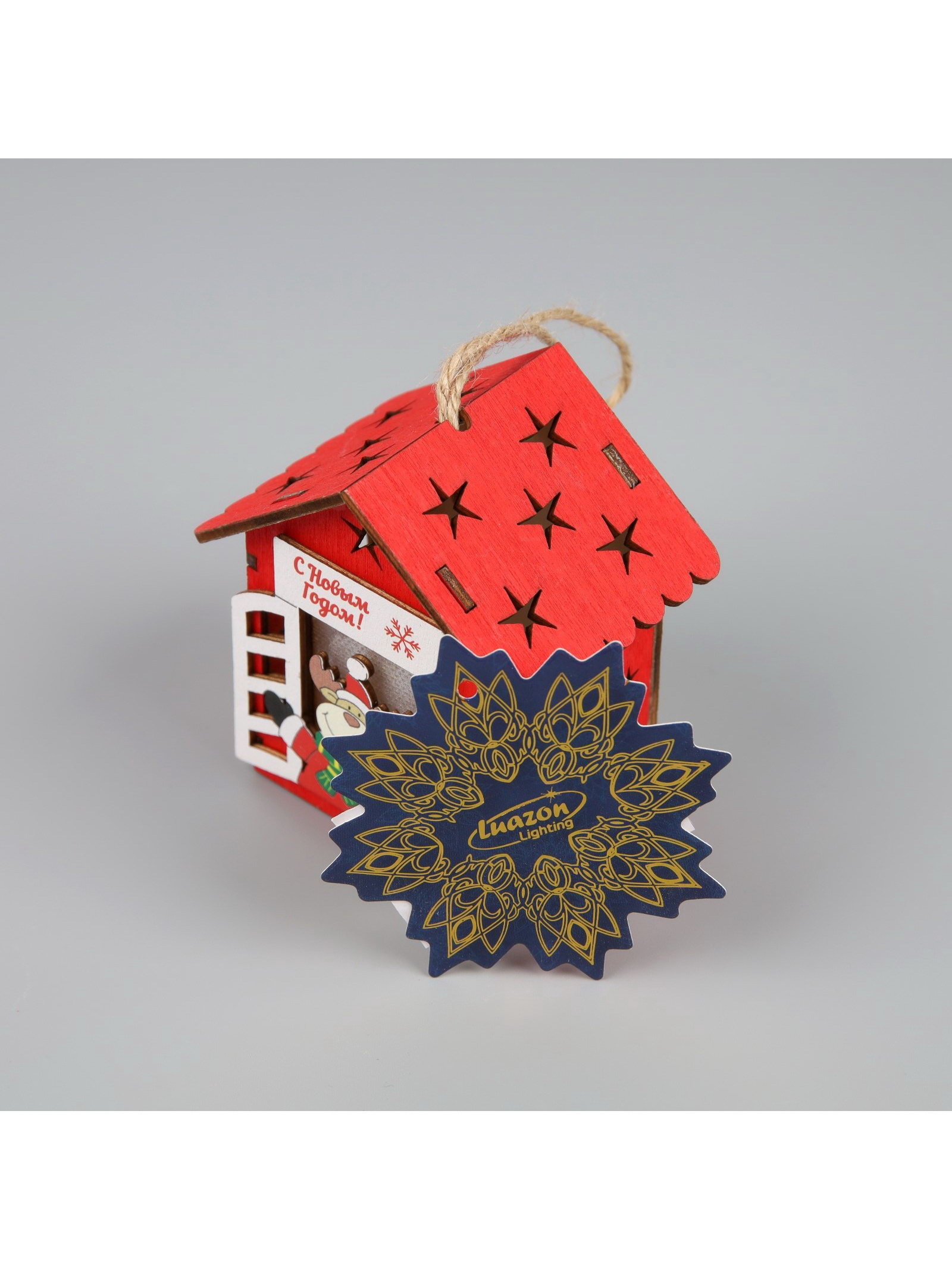 Ёлочная игрушка "Дом с оленем", 8.7х4.6 см, 1 LED, от батареек, свечение тёплое белое, Luazon Lighting, Китай