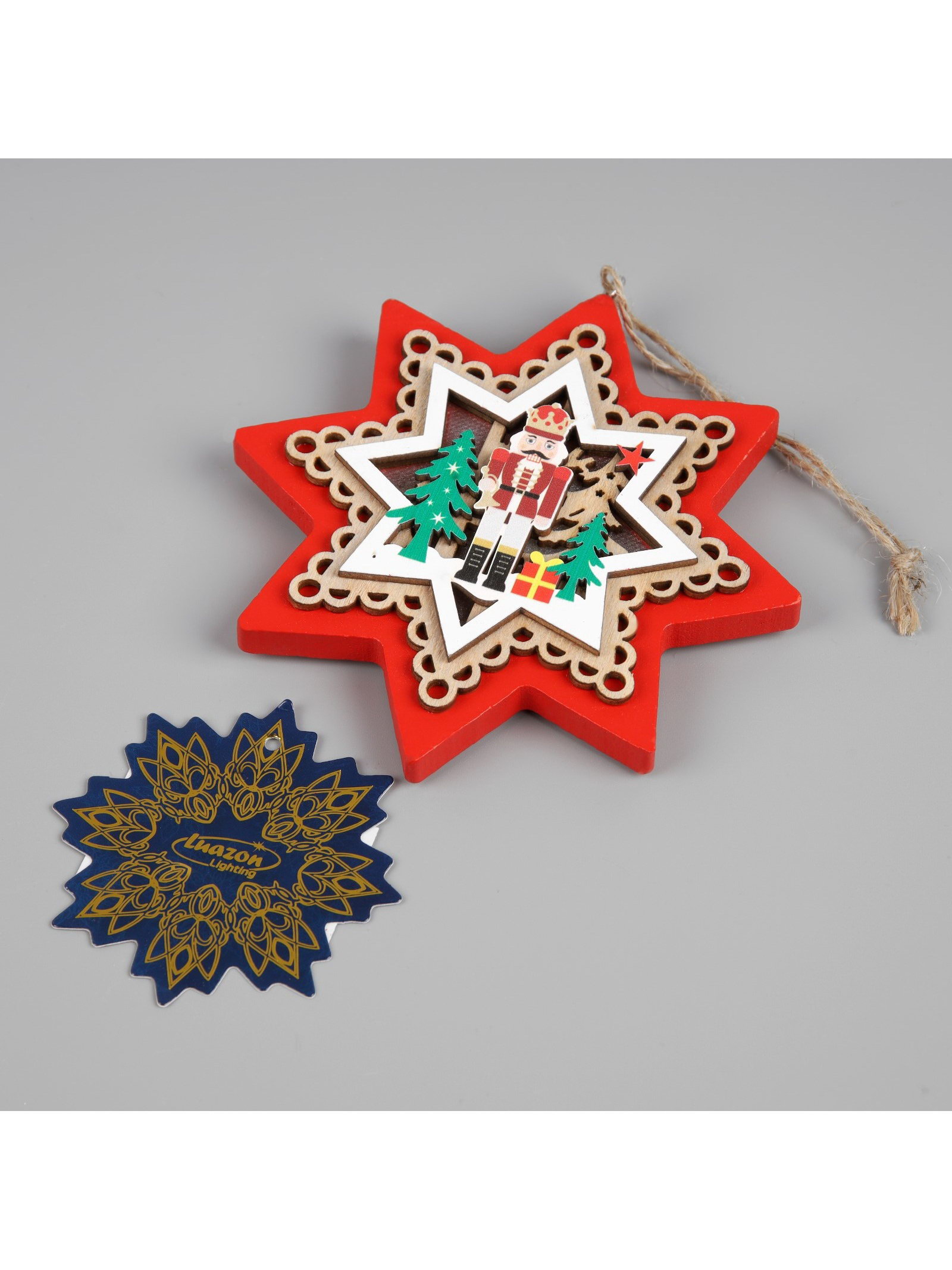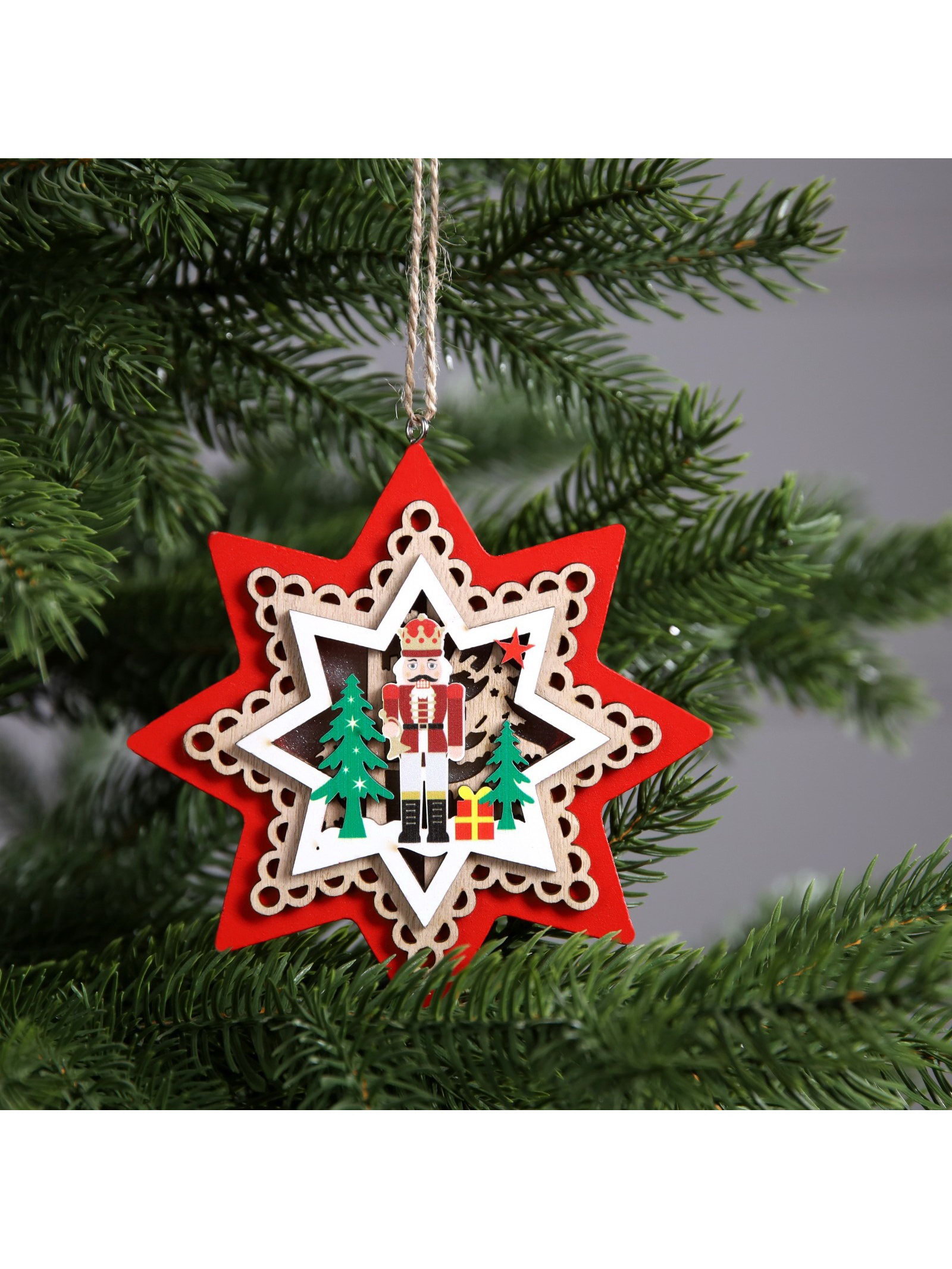 Ёлочная игрушка "Звезда с щелкунчиком", 10х10 см, 1 LED, от батареек, свечение тёплое белое, 10x10x3 см., Luazon Lighting, Китай
