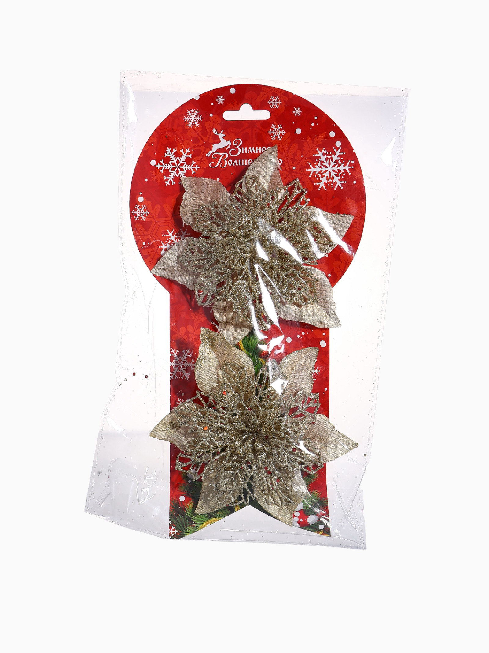 Ёлочные игрушки 2 шт. "Зимнее волшебство. Драгоценный цветок" пластик, сеточка, 12 см, золото, 12x12 см., Зимнее волшебство, Китай