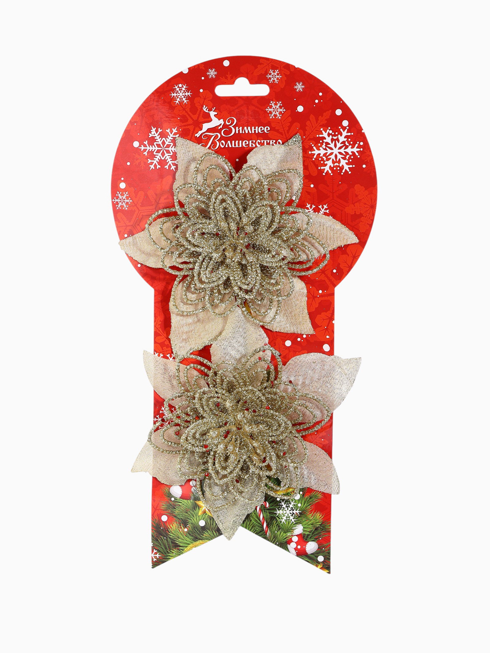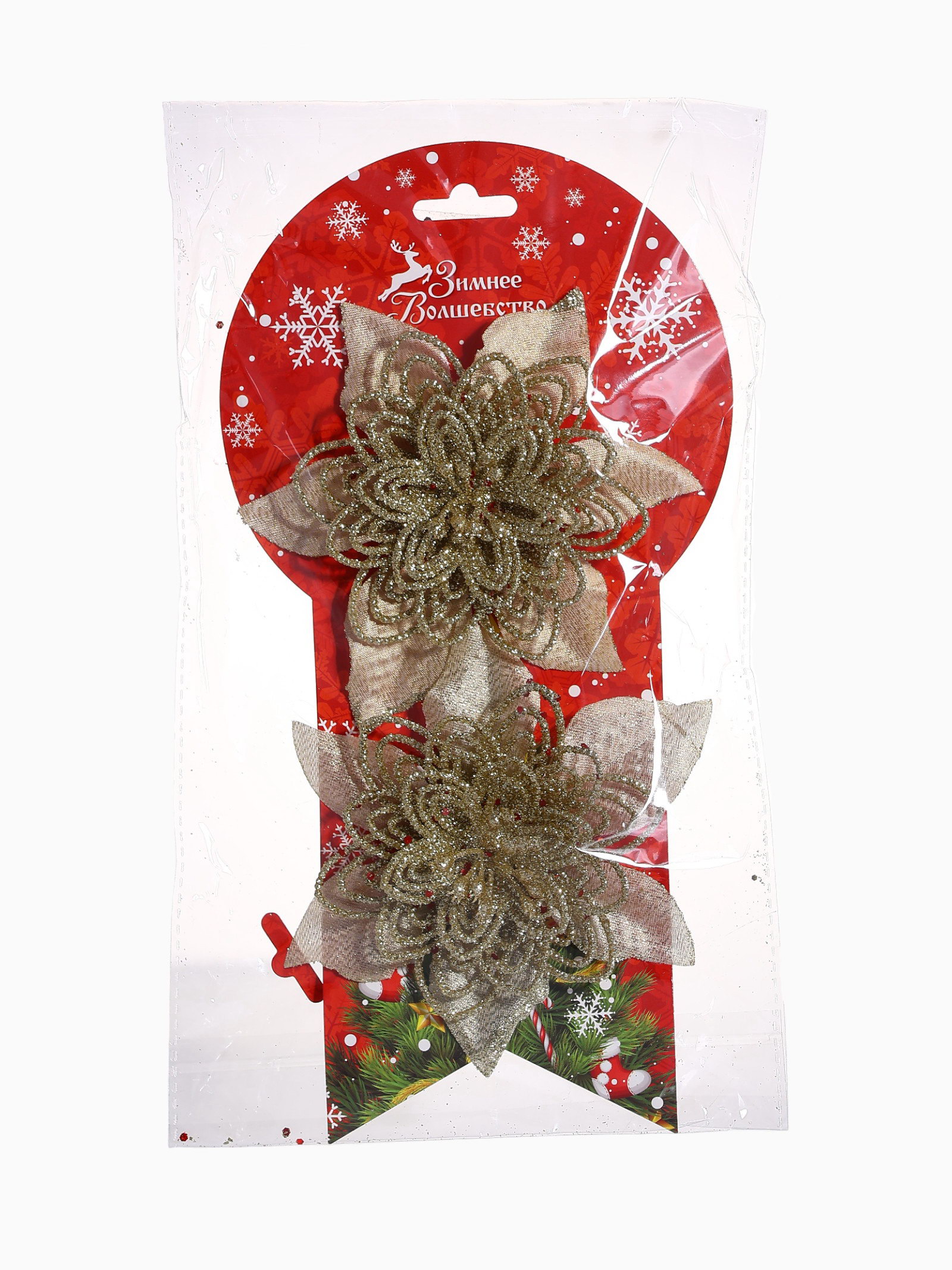 Ёлочные игрушки 2 шт. "Зимнее волшебство. Драгоценный цветок" пластик, ажурный, 12 см, золото, 12x12 см., Зимнее волшебство, Китай