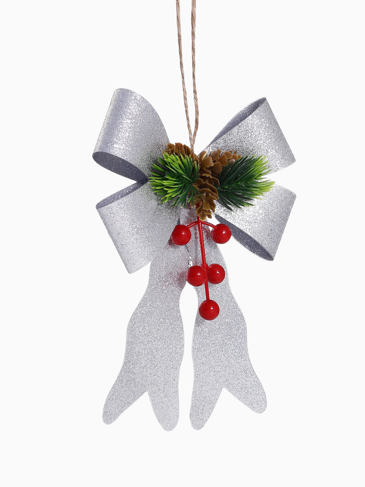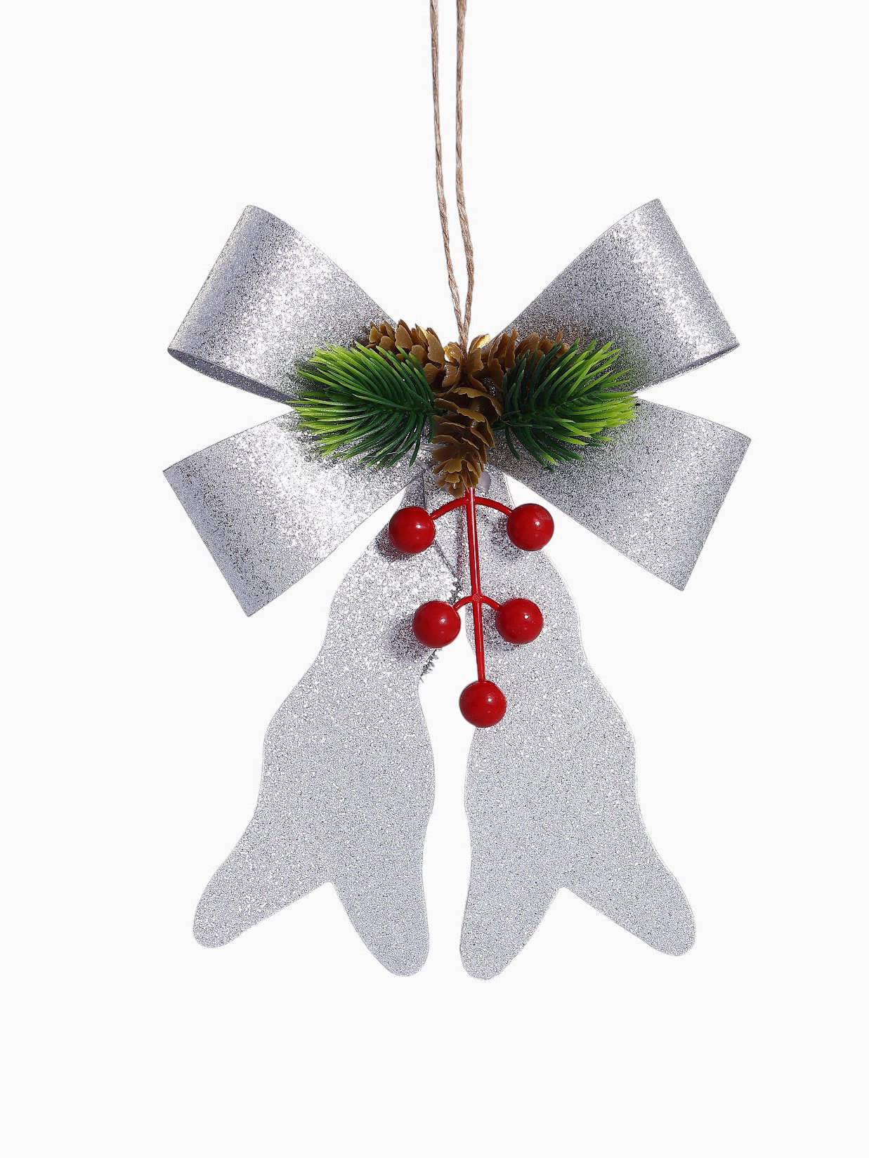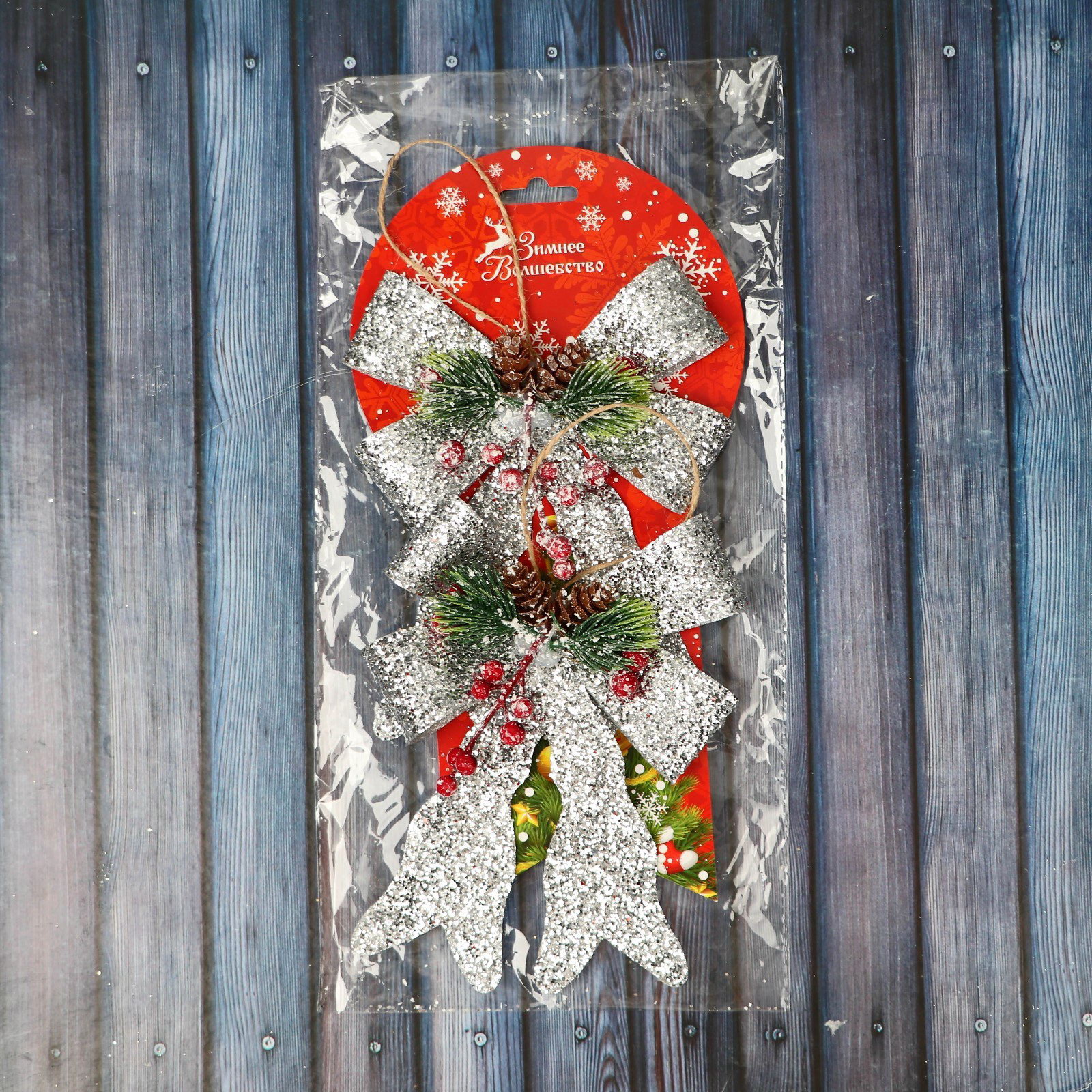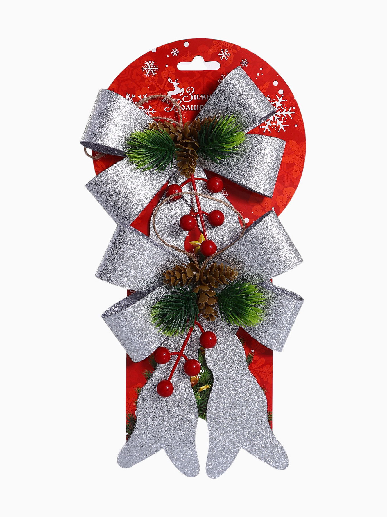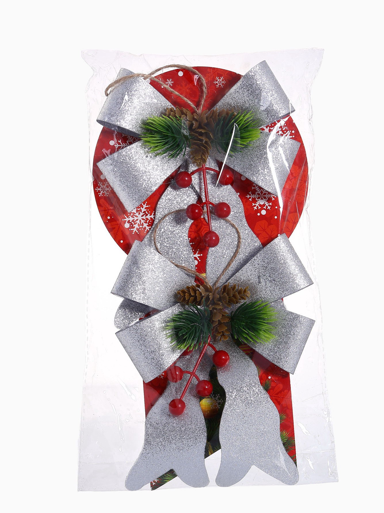 Ёлочные игрушки 2 шт. "Зимнее волшебство. Бант элит" пластик, 12x14 см, серебро, 12x14 см., Зимнее волшебство, Китай