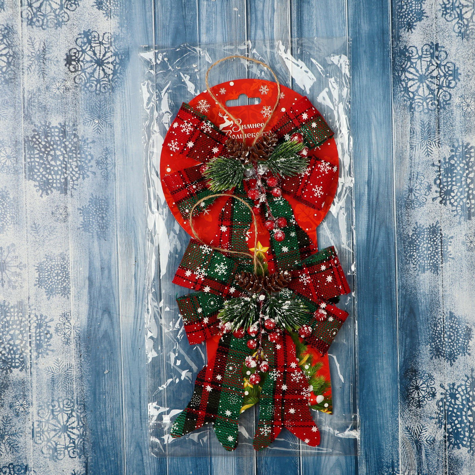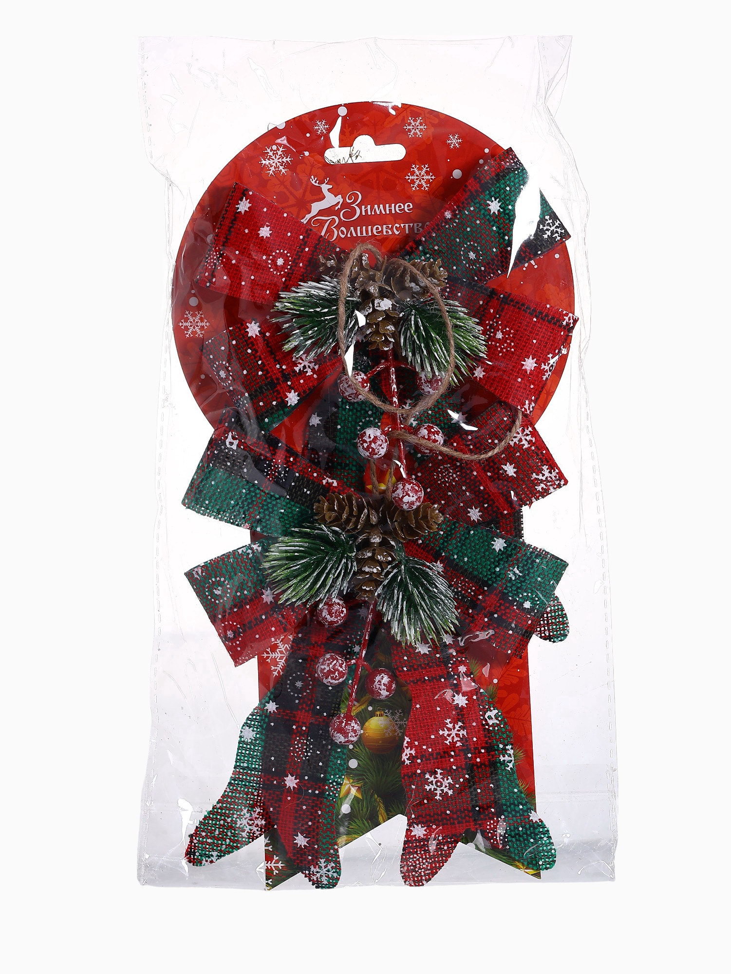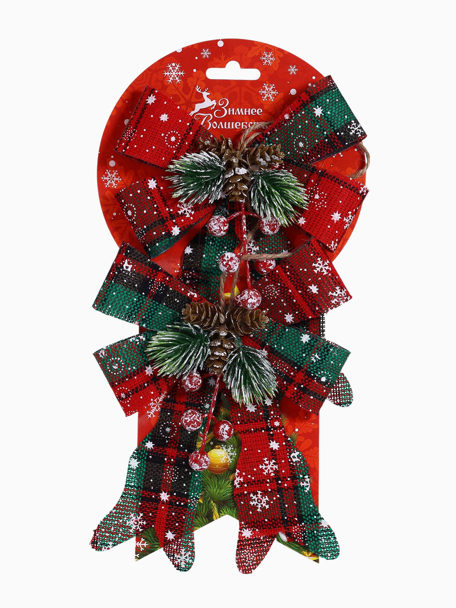 Ёлочные игрушки 2 шт. "Зимнее волшебство. Бант" пластик, клетка, 12x14 см, красный, 12x14 см., Зимнее волшебство, Китай
