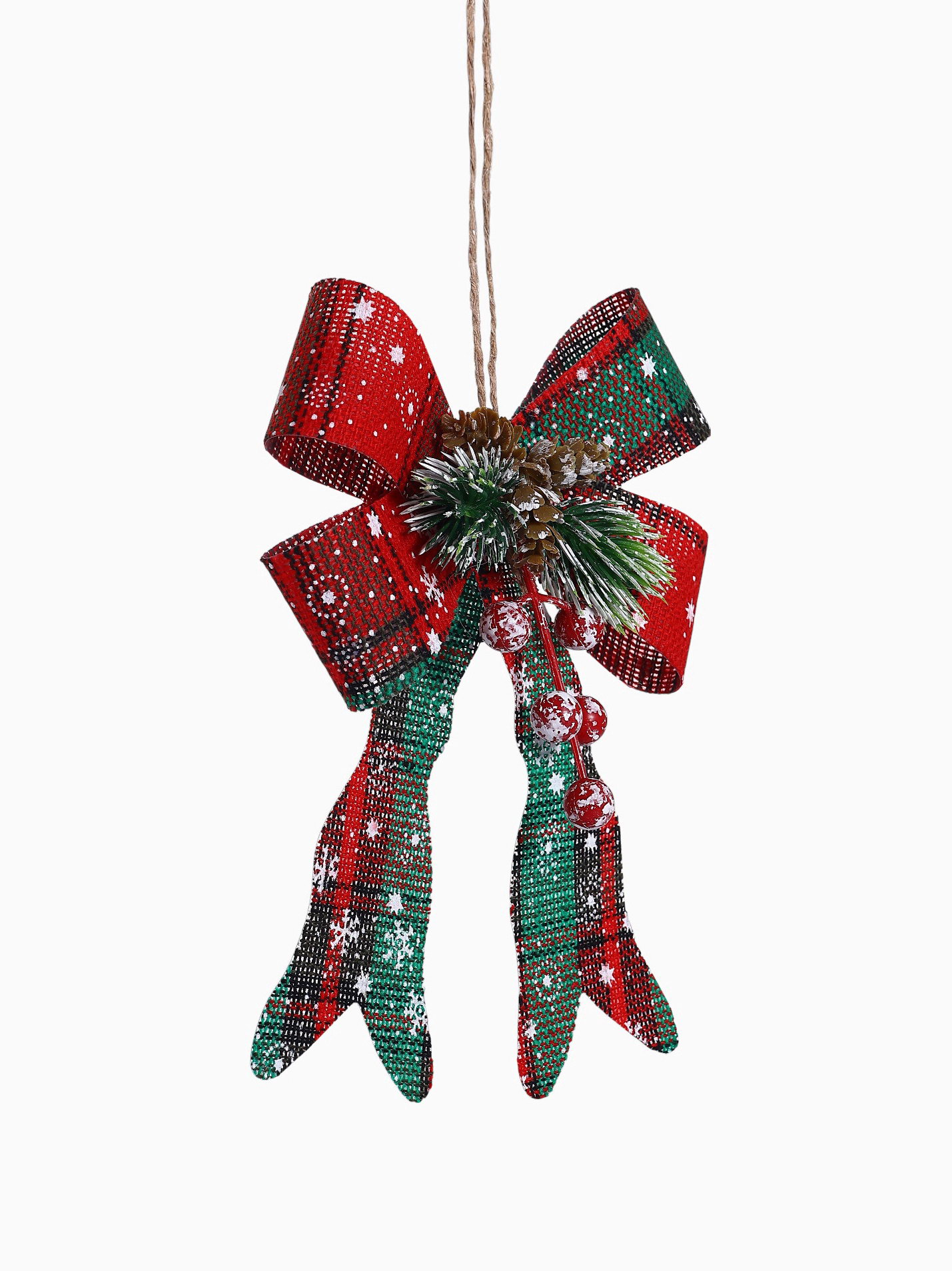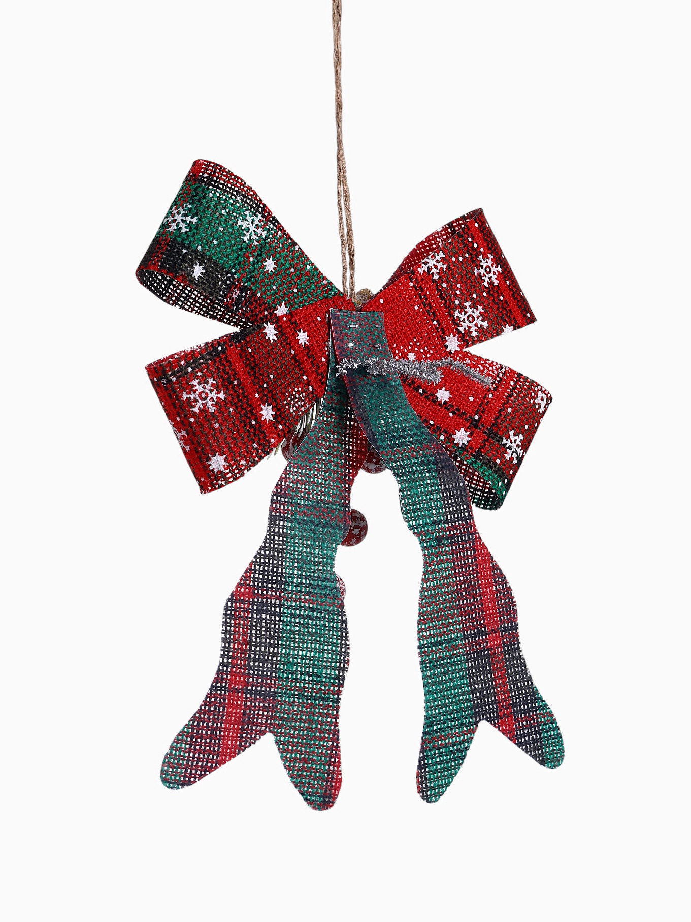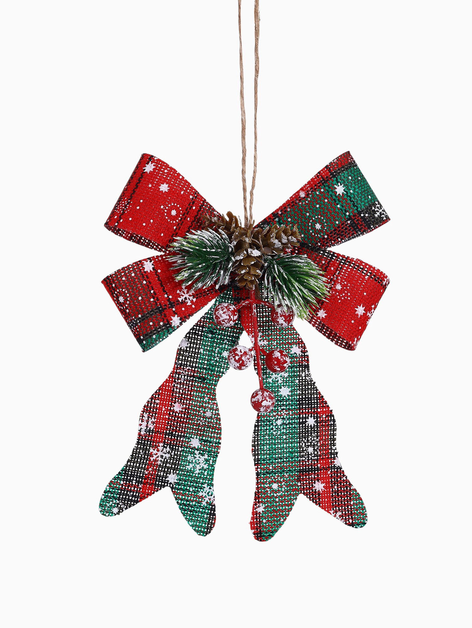 Ёлочные игрушки 2 шт. "Зимнее волшебство. Бант" пластик, клетка, 12x14 см, красный, 12x14 см., Зимнее волшебство, Китай
