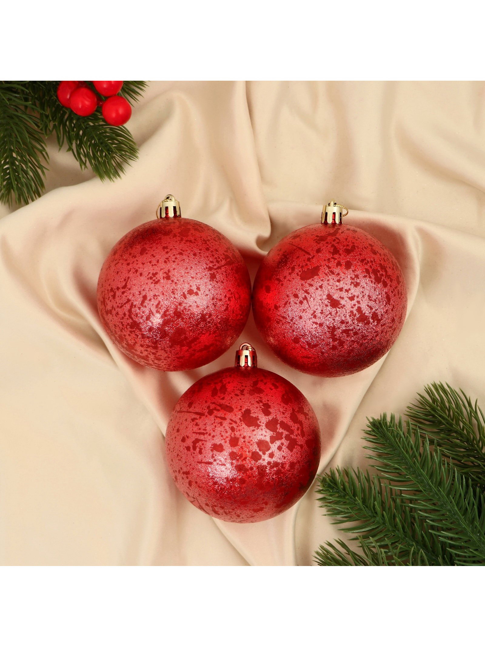 Создание праздничного настроения Эти шары помогают подчеркнуть торжественность момента, добавляя в оформление уют и изысканность. Их размер и цвет делают декор заметным, но не перегружают общую композицию. Такой набор станет универсальным решением для тех, кто ценит сочетание ретро-элементов и современного дизайна в новогоднем убранстве. | ||