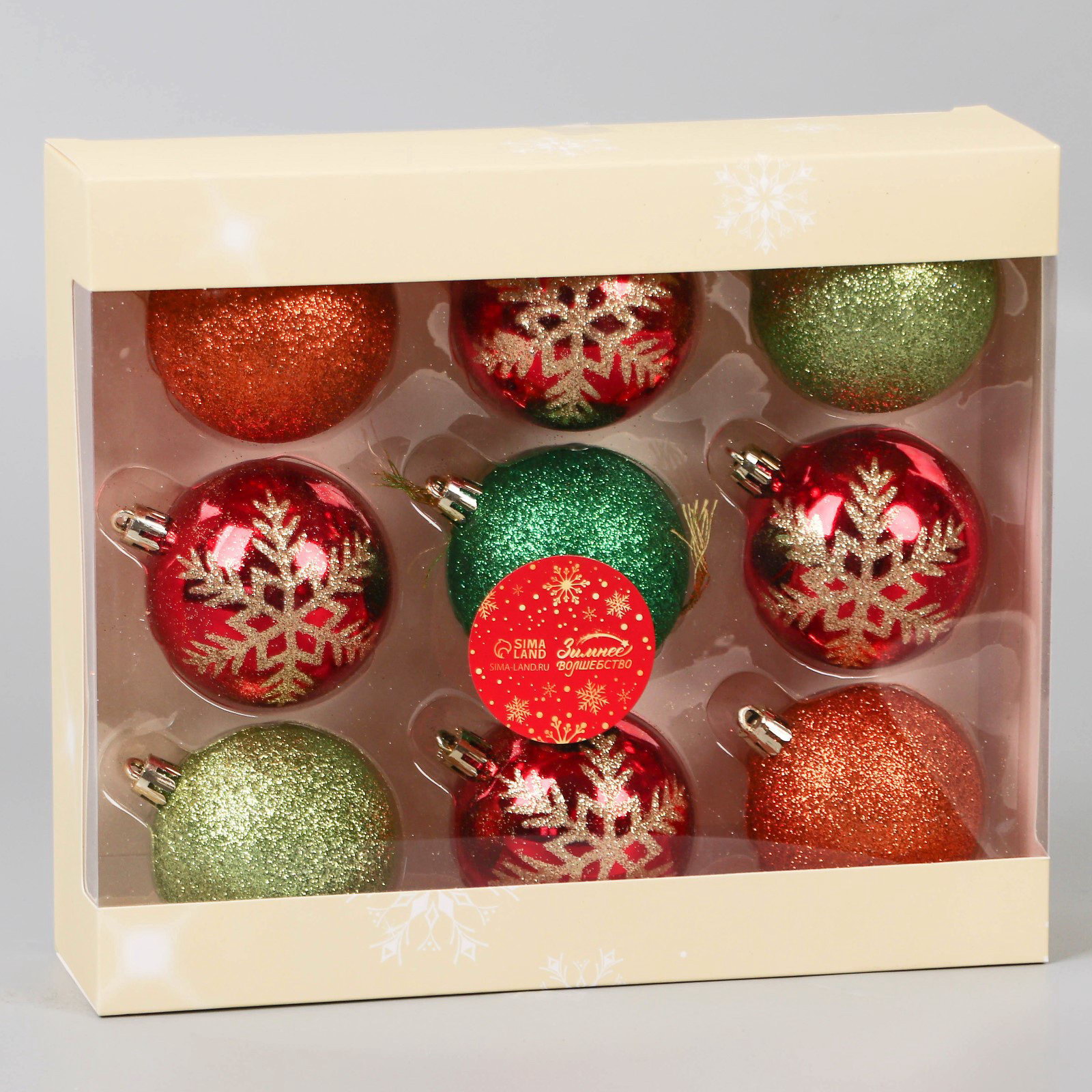 Ёлочные игрушки "Адель" снежинки, шары новогодние, d=6 см, набор 9 шт., МИКС, 6x6 см., Зимнее волшебство, Китай