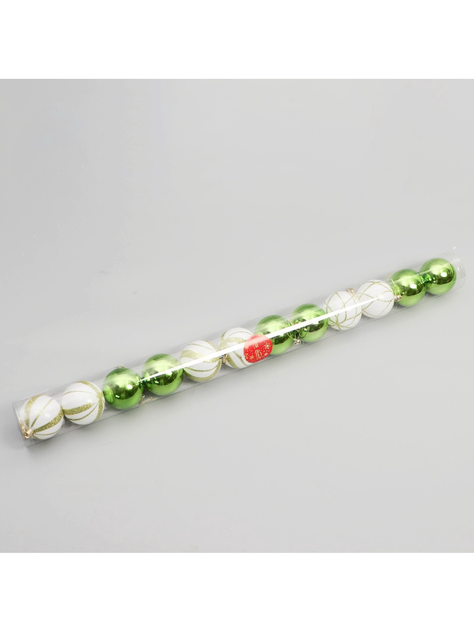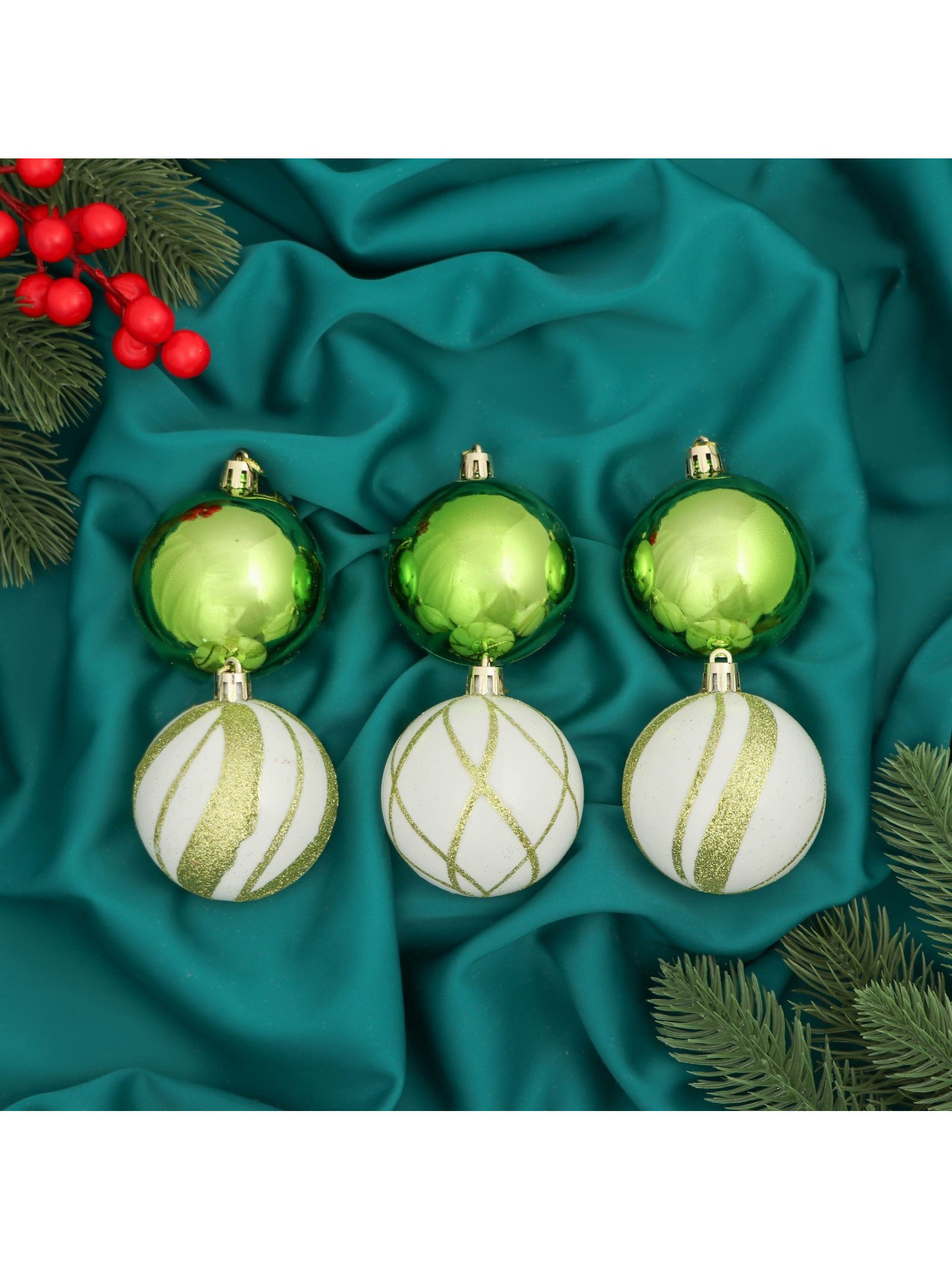 Ёлочные игрушки "Агнет", шары новогодние, d=6 см, набор 12 шт., волны, бело-зелёный, 6x6 см., Зимнее волшебство, Китай
