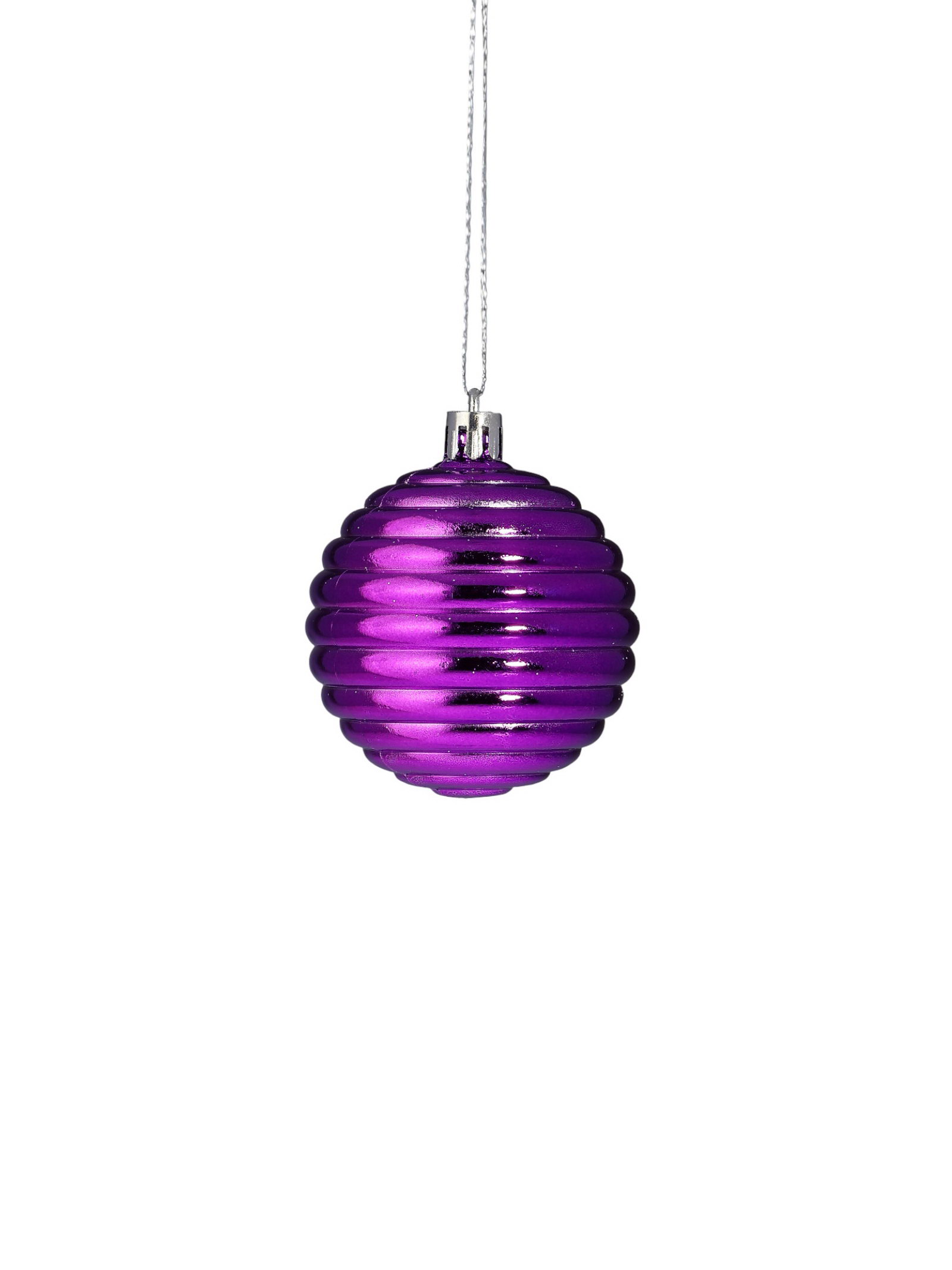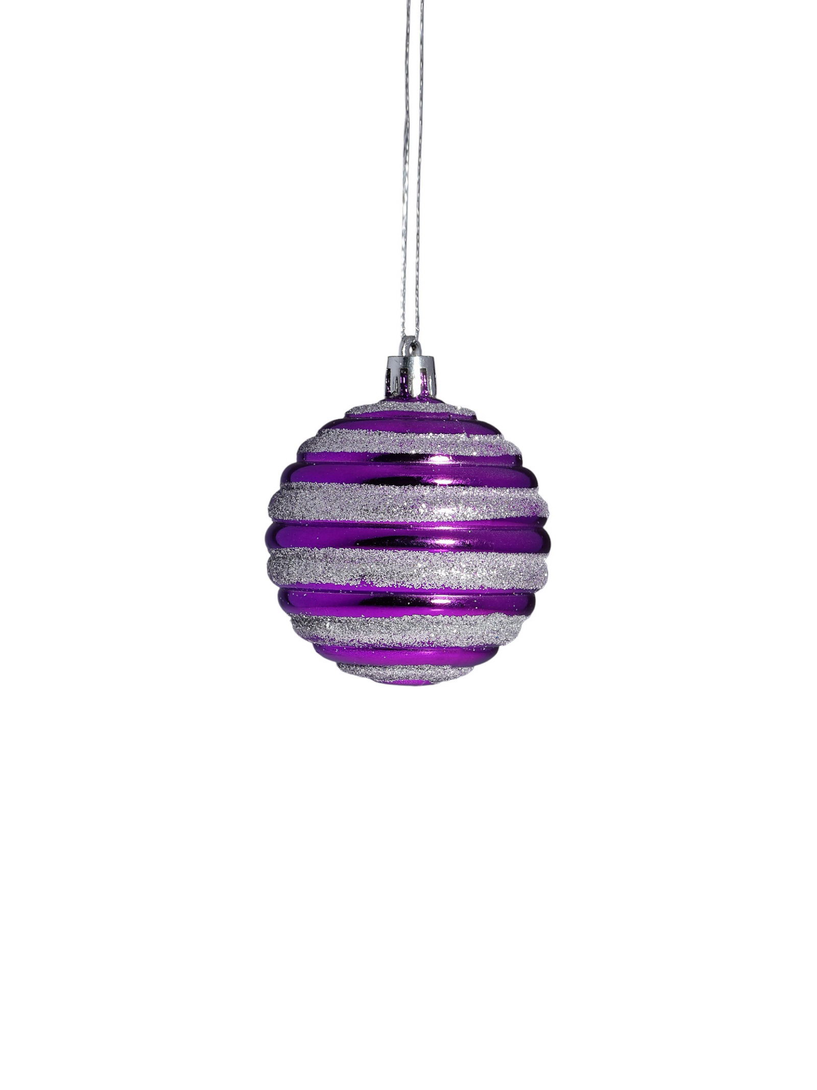 Ёлочные игрушки "Агнет", полосы, набор 6 шт., d=6 см, серебристо - фиолетовый, 6x6 см., Зимнее волшебство, Китай