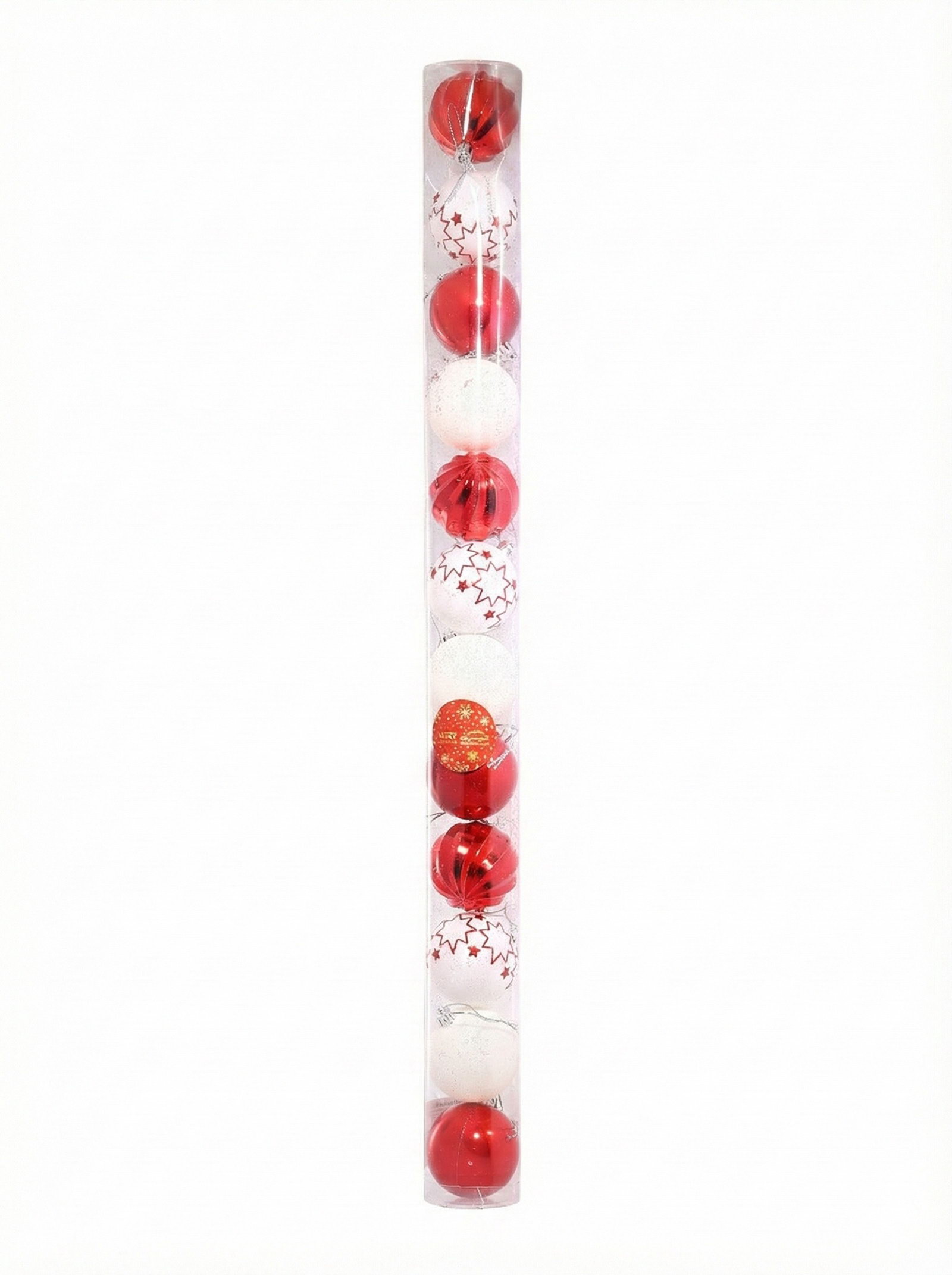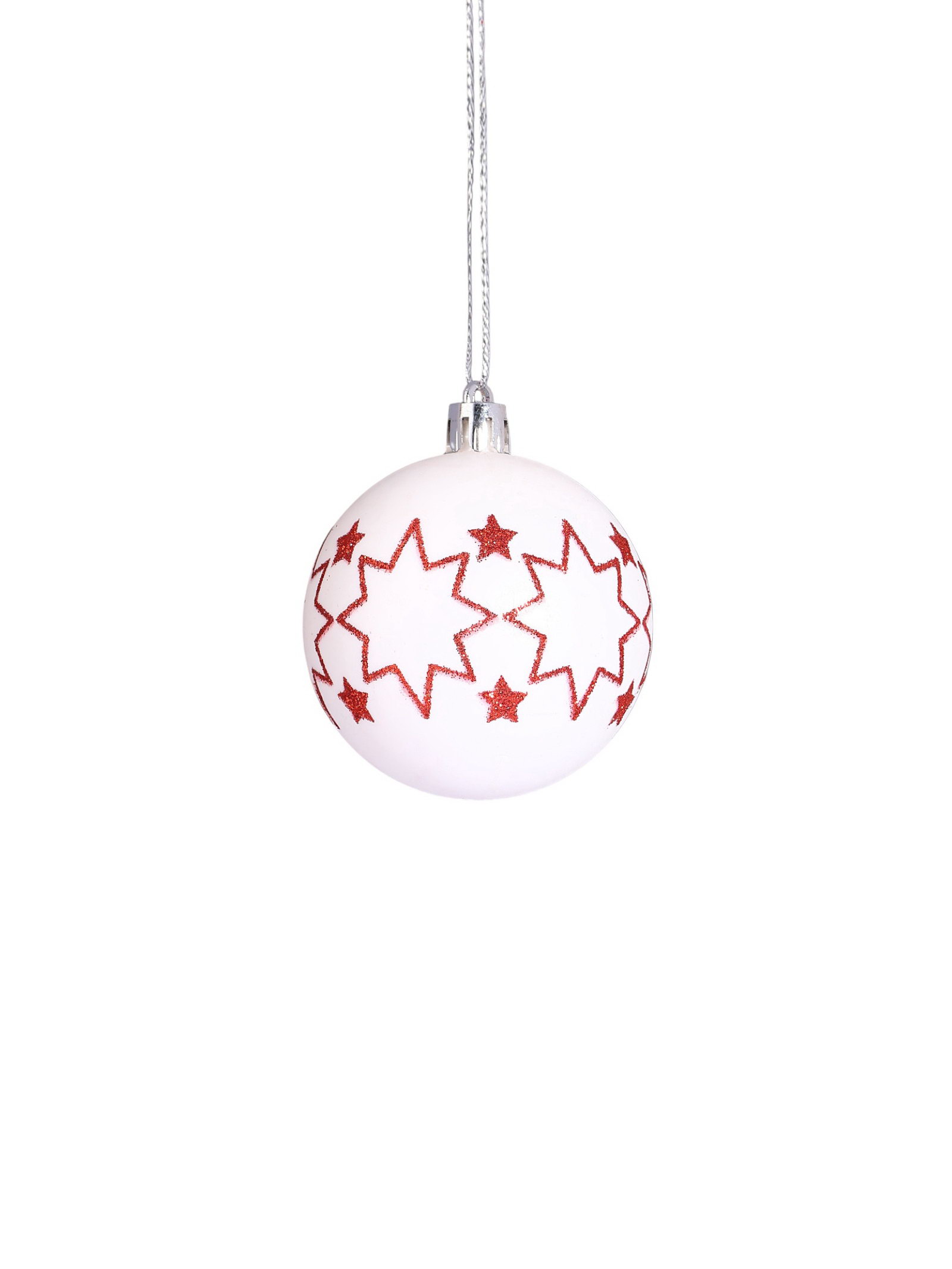 Ёлочные игрушки "Агнет" узоры, шары новогодние, d=6 см, набор 12 шт., красно-белый, 6x6 см., Зимнее волшебство, Китай