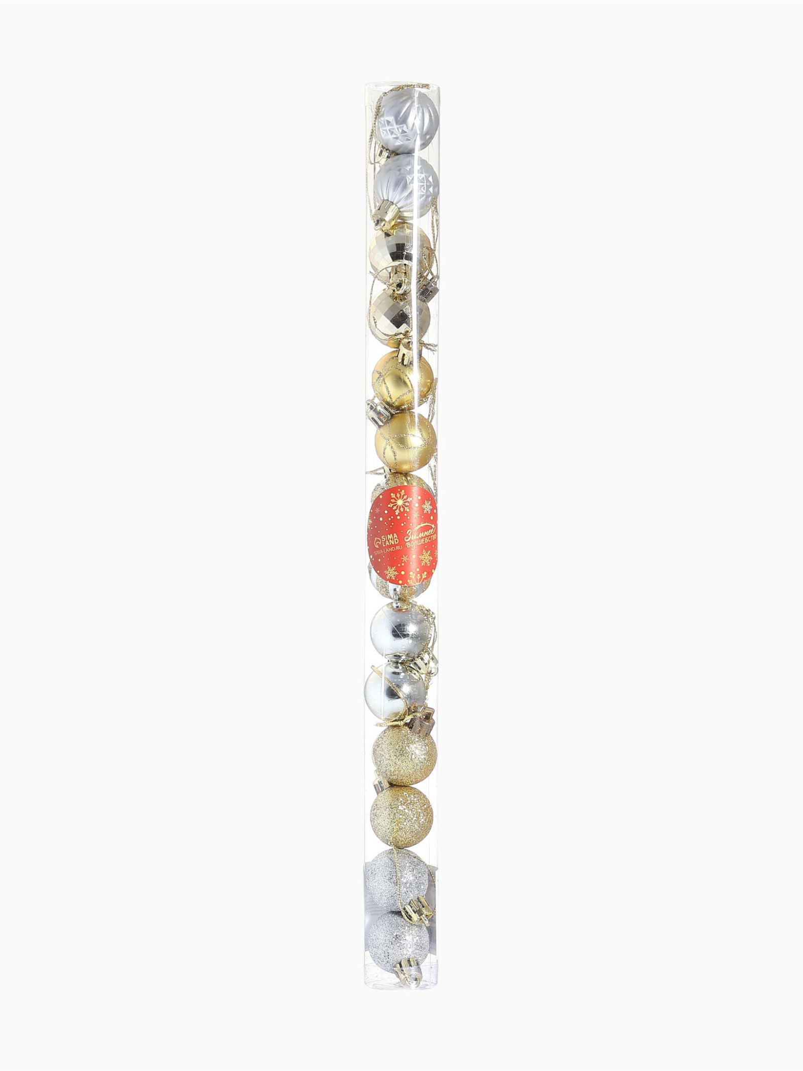 Особенности: Однотонная, Рельефная Цвет: Золотистый, Серебристый Стиль: Ар-деко, Классика Размер упаковки: 3.5 x 3.5 x 40 см. tnved: 9505109000 Тематика праздника: Новый год Рисунок: Да Форма игрушки: Шар Символ года: Нет Диаметр шара, см: 3 Набор: Да В наборе, шт.: 14 Новогодние шары с узором это праздничный декор в стиле ар-деко и классики. Набор из 14 пластиковых игрушек диаметром 3 см оформлен в золотисто-серебристой гамме с рисунком в виде полос и орнаментов. Компактные размеры и строгие формы делают их универсальным решением для украшения ёлки в преддверии праздника. Особенности