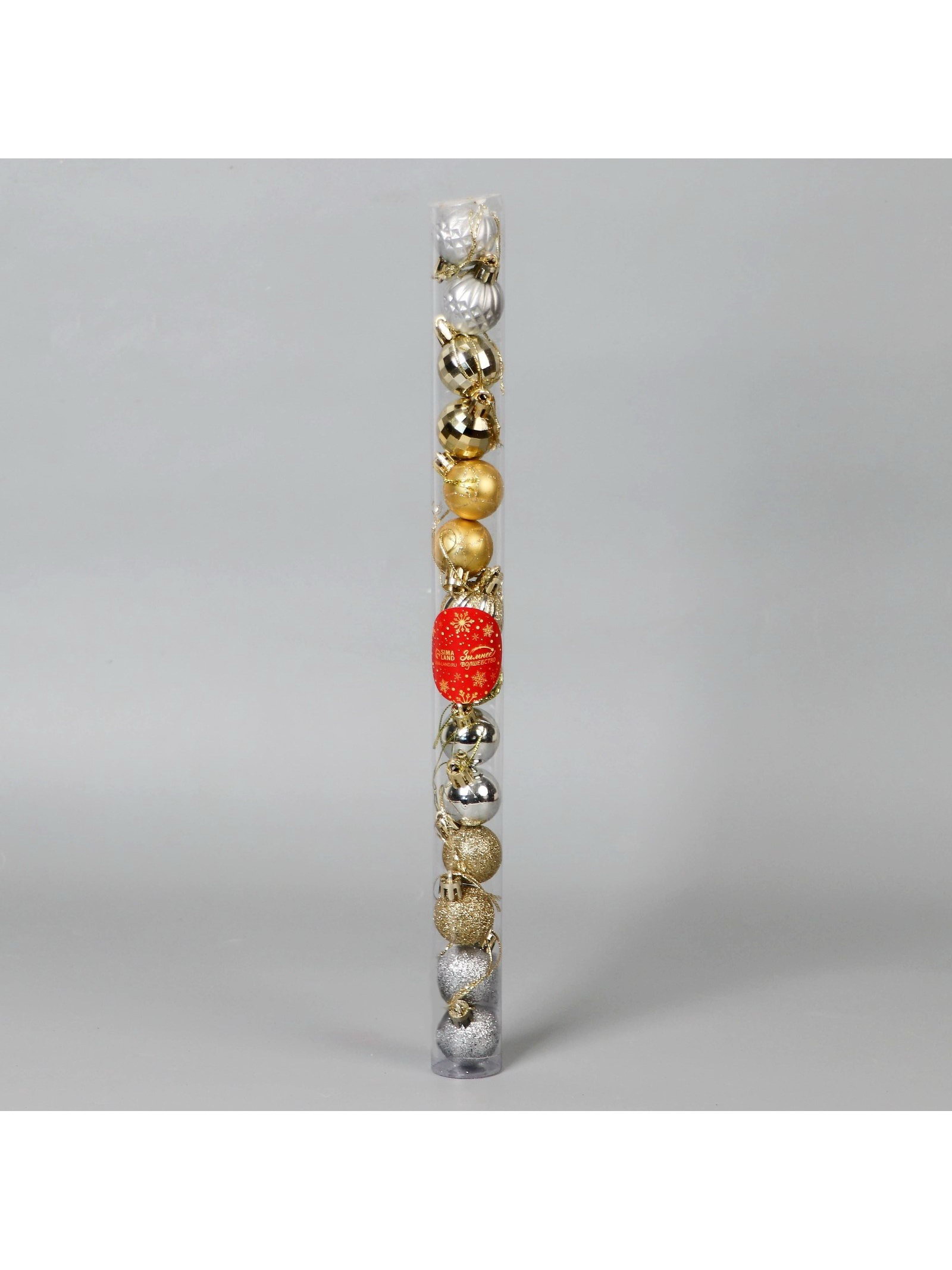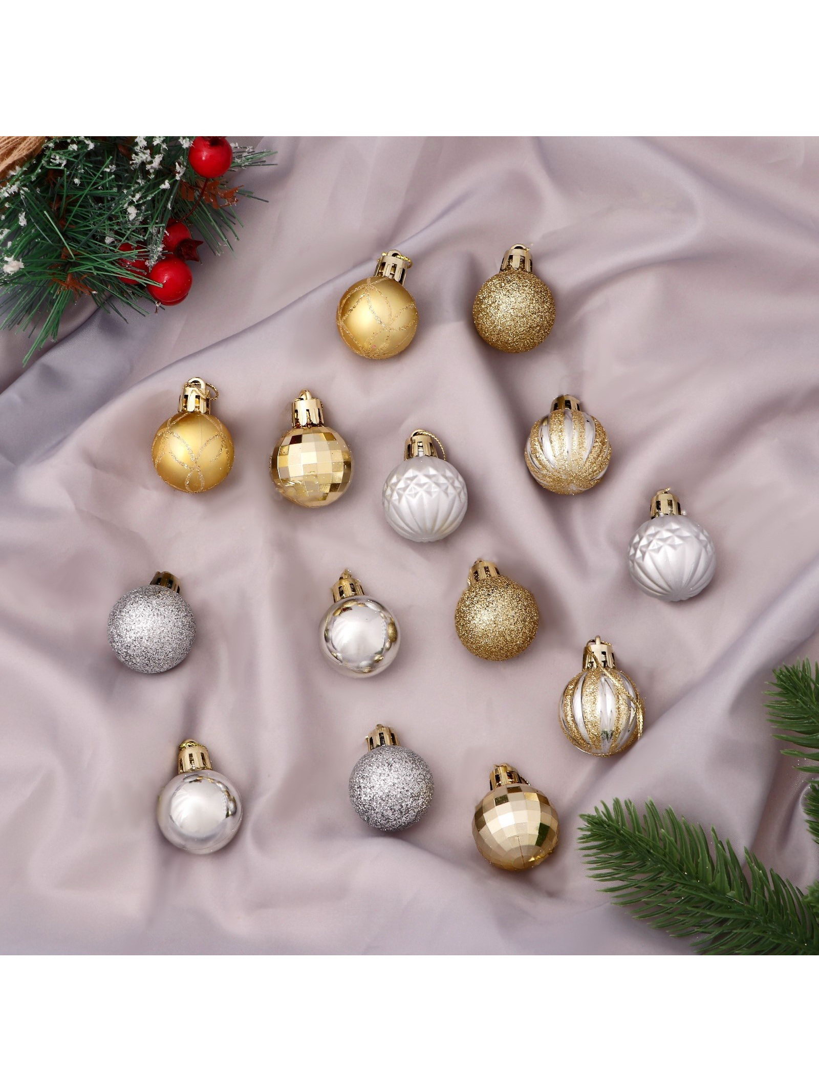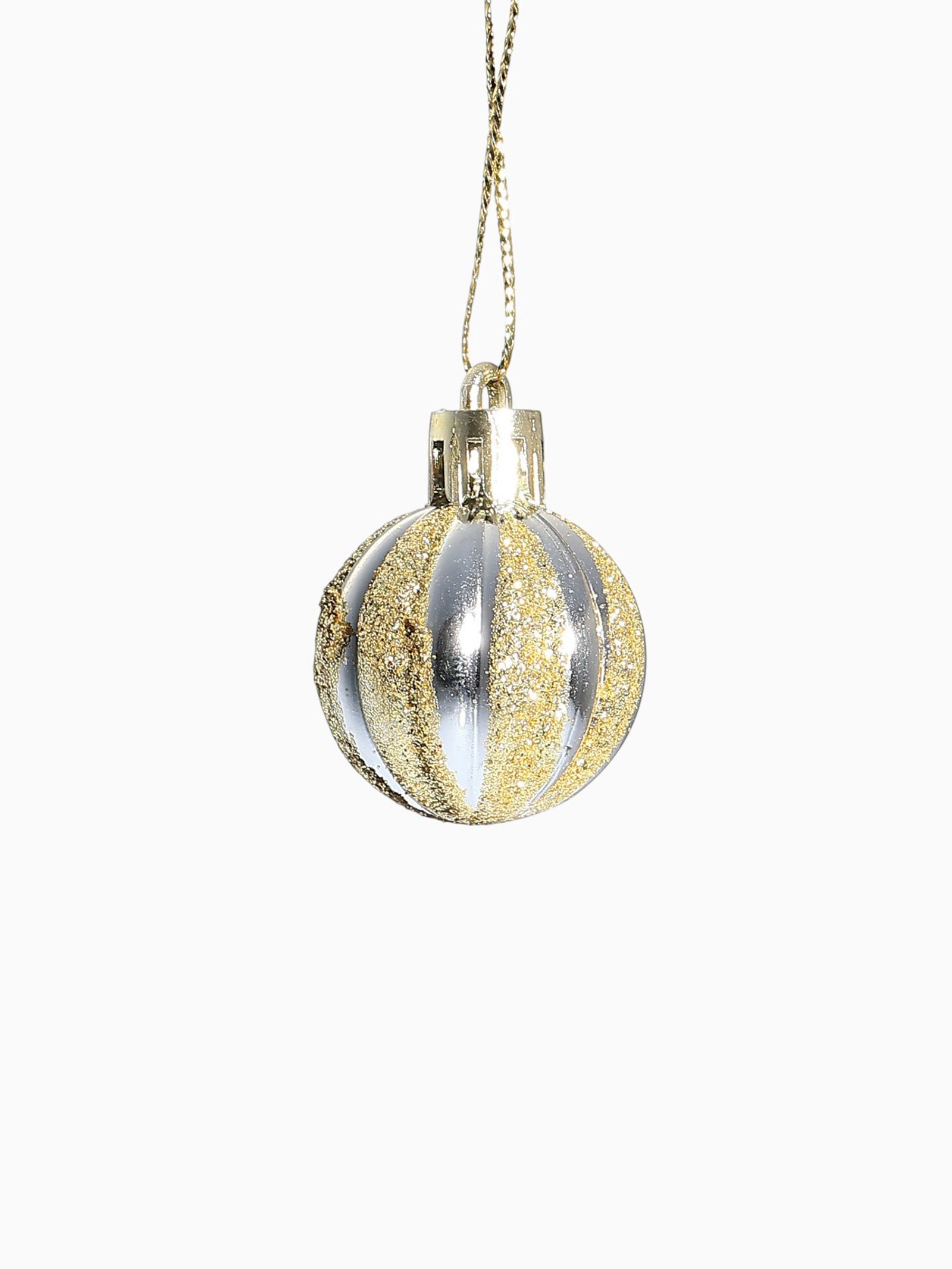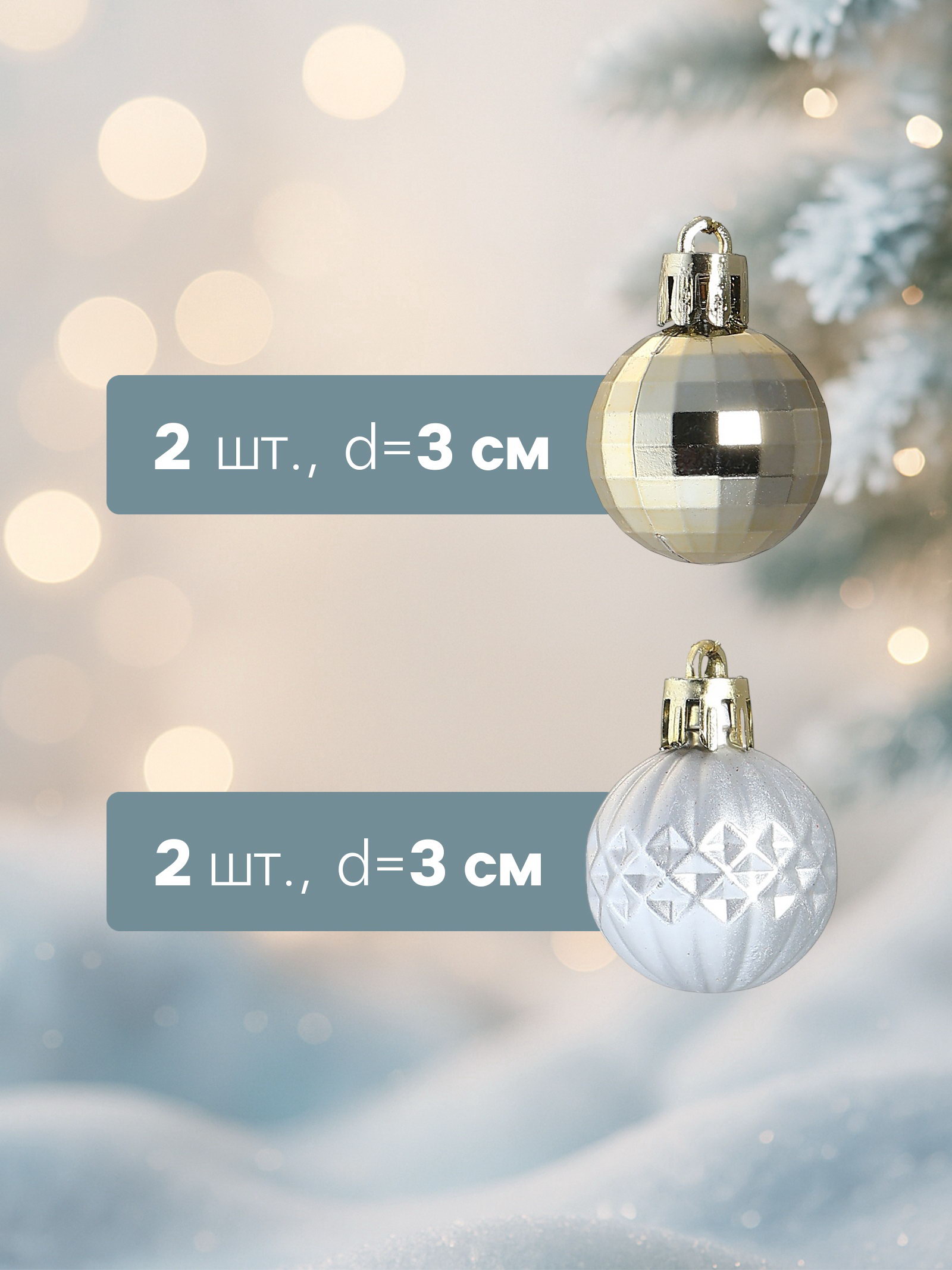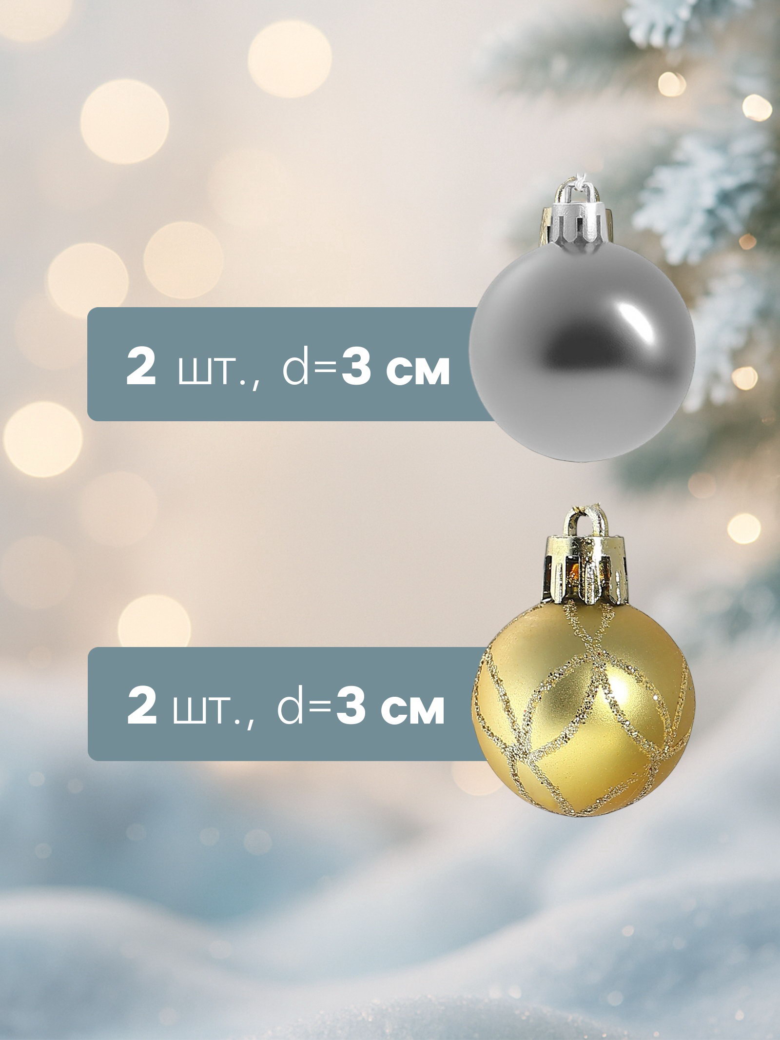 Ёлочные игрушки "Агнет", шары новогодние, d=3 см, набор 14 шт., полосы, узор, золотистый/серебристый, 3x3 см., Зимнее волшебство, Китай