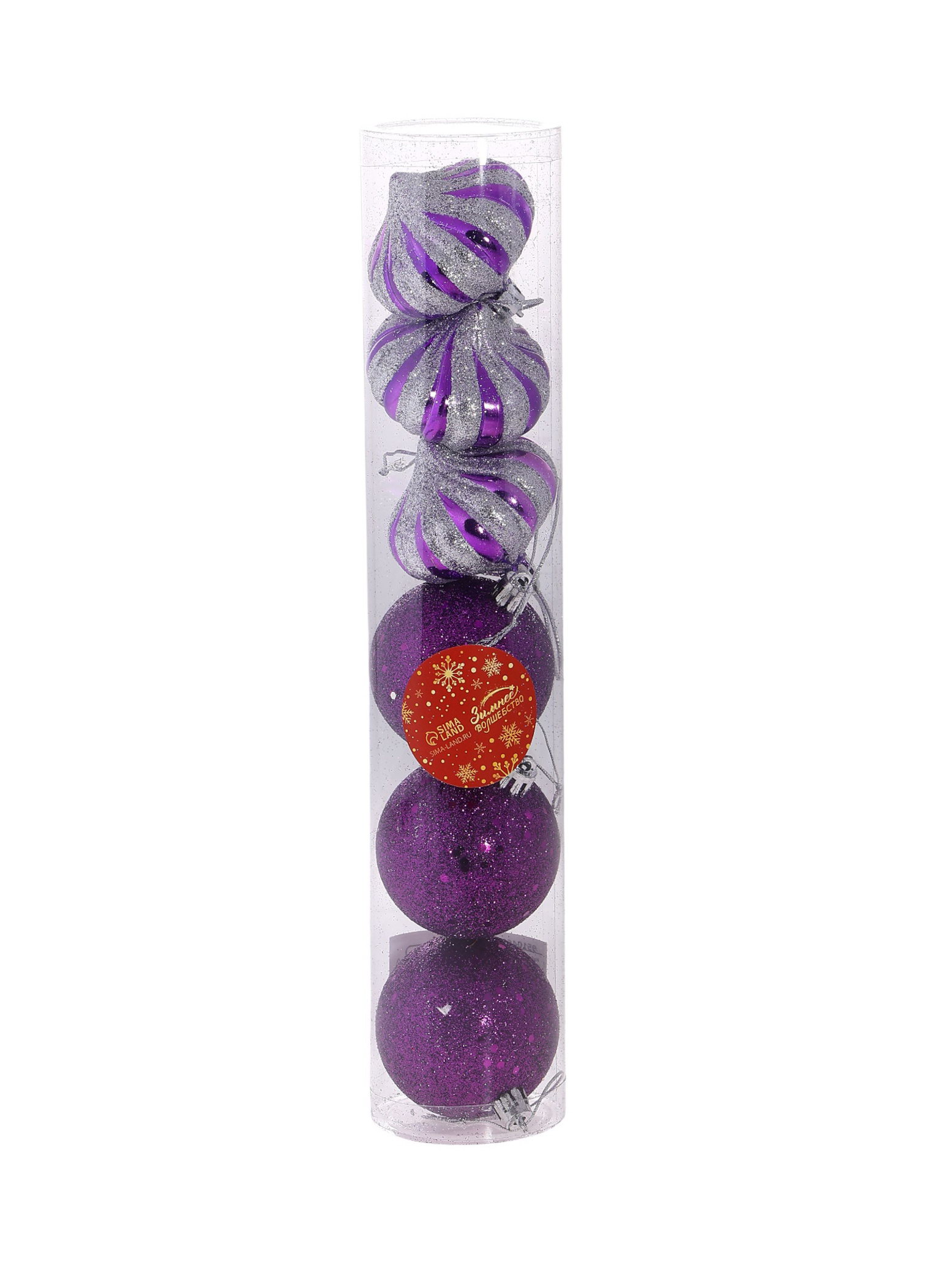 Ёлочные игрушки "Агнет", набор 6 шт., d=6 см, серебристо - фиолетовый, 6x6 см., Зимнее волшебство, Китай