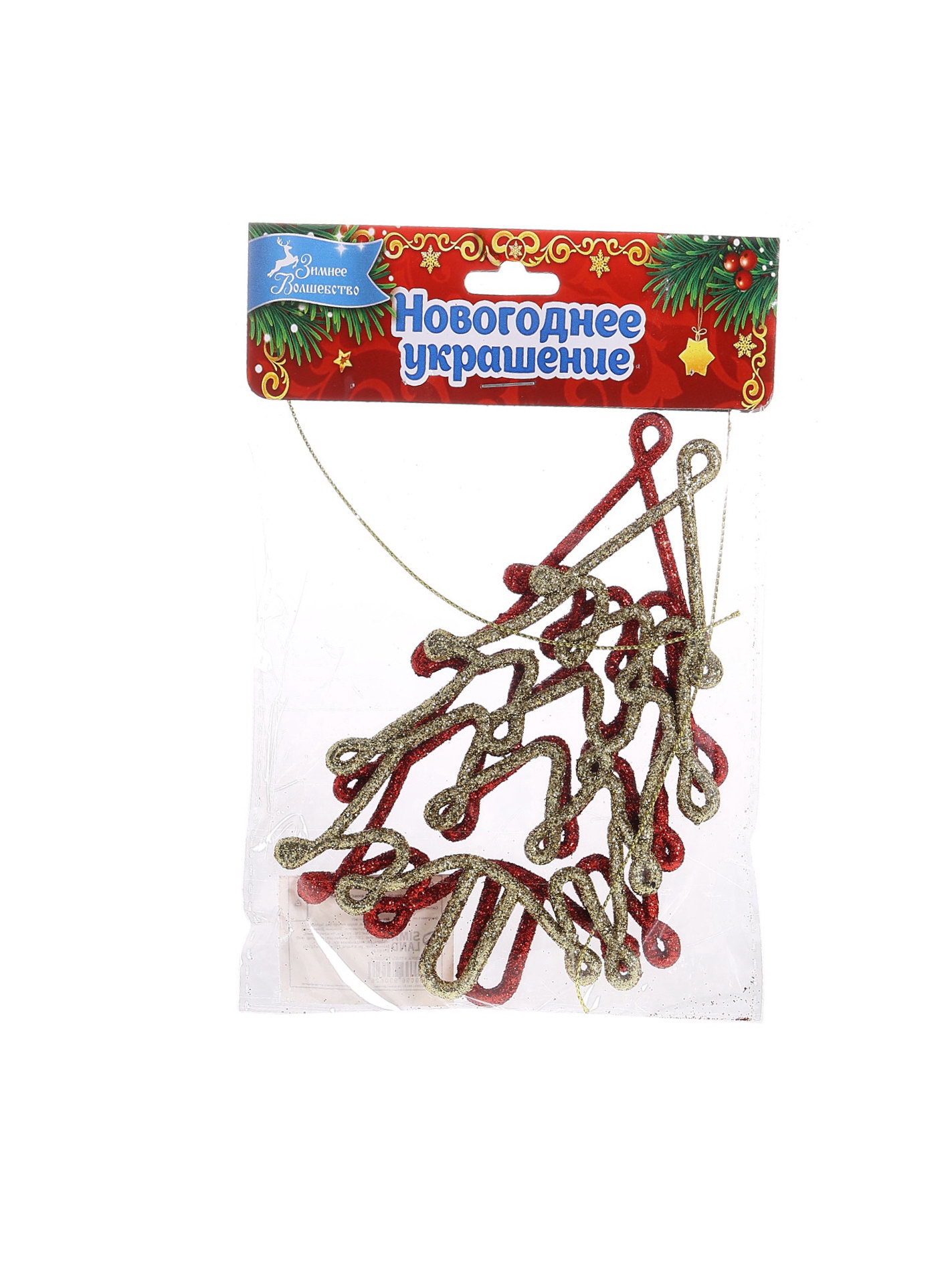 Ёлочные игрушки 2 шт. "Ёлочка люкс" 7x13 см, красный золото, 7x13 см., Зимнее волшебство, Китай