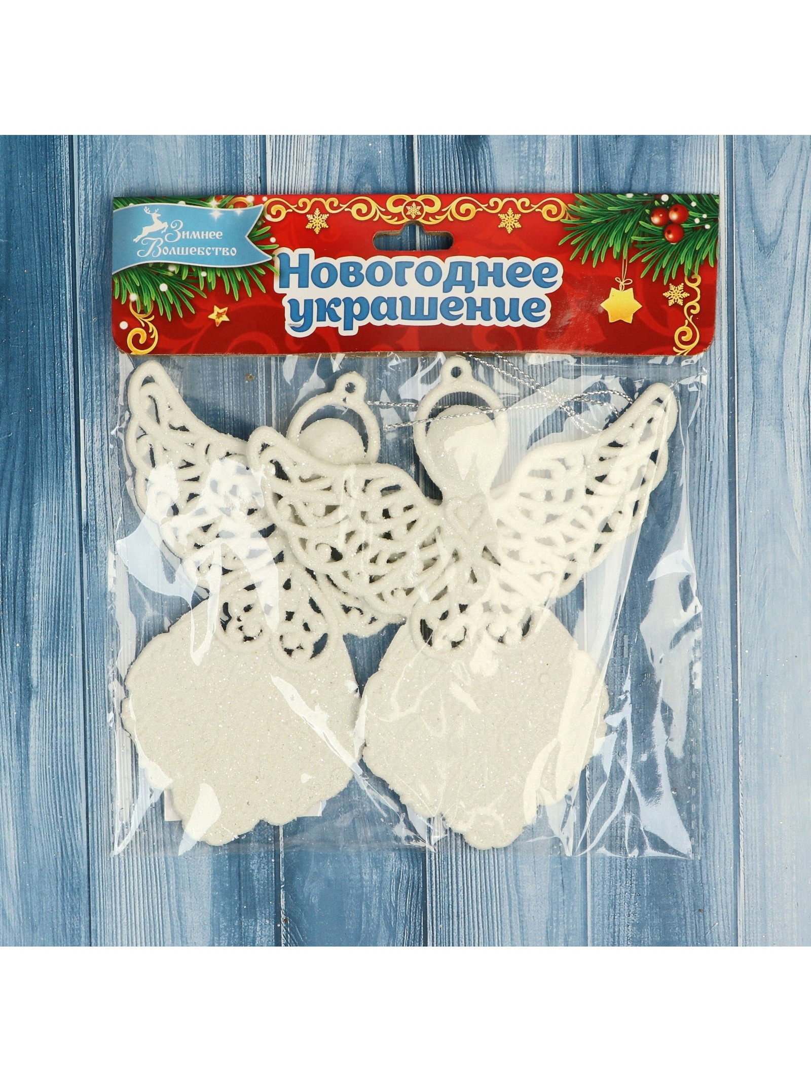 Ёлочные игрушки 2 шт. "Ангелочек люкс" 9x11 см, белый, 9x11 см., Зимнее волшебство, Китай
