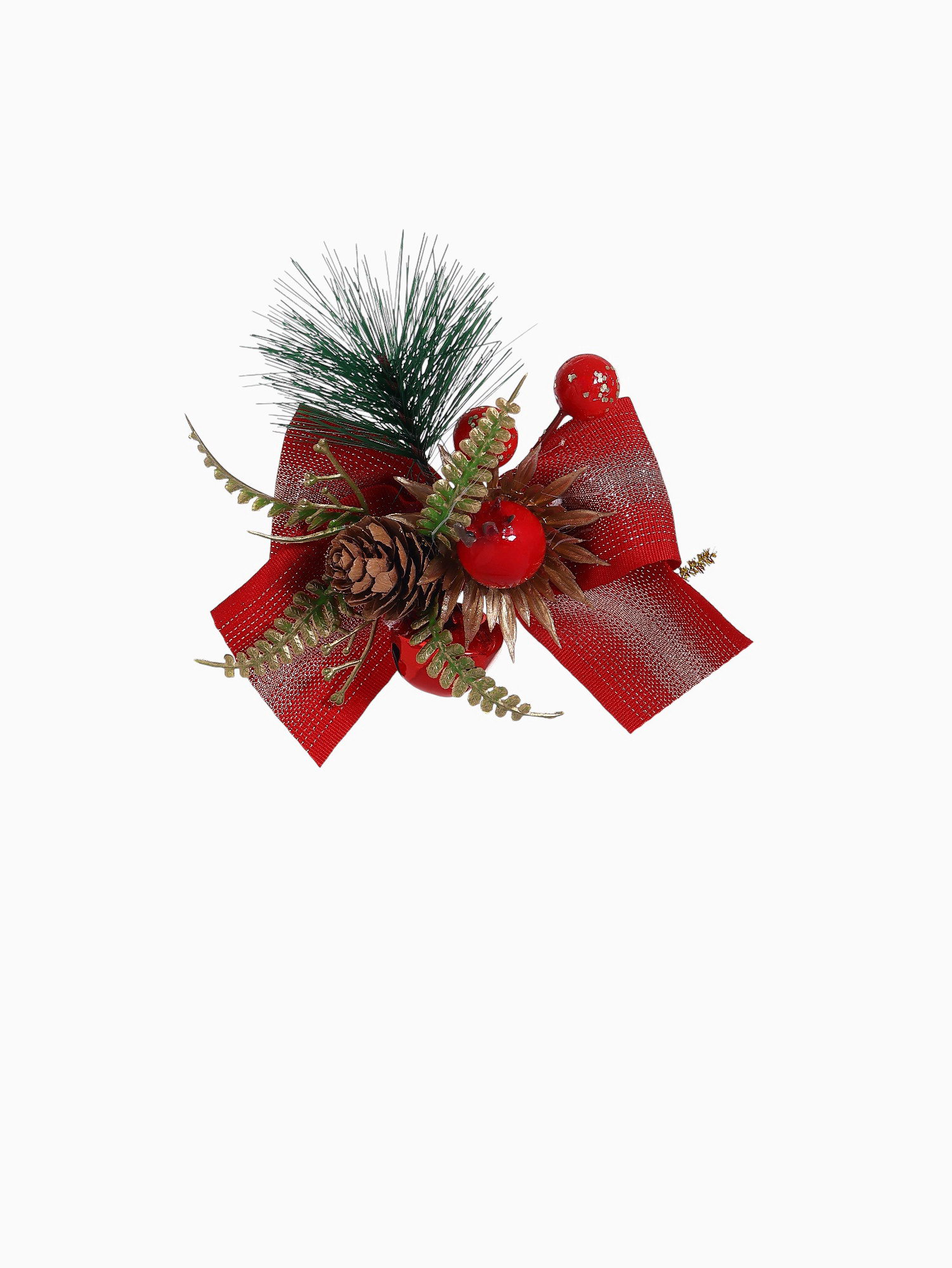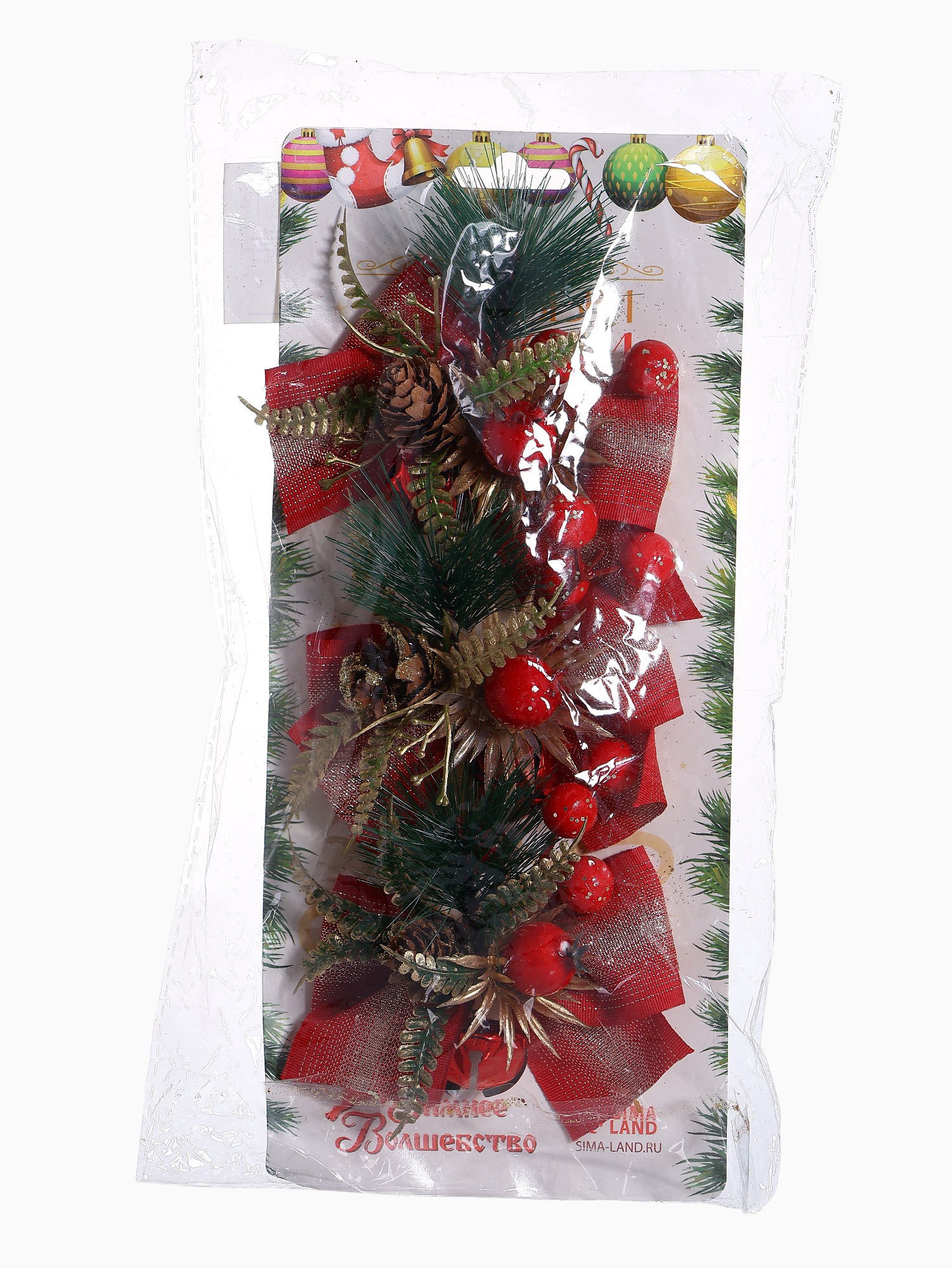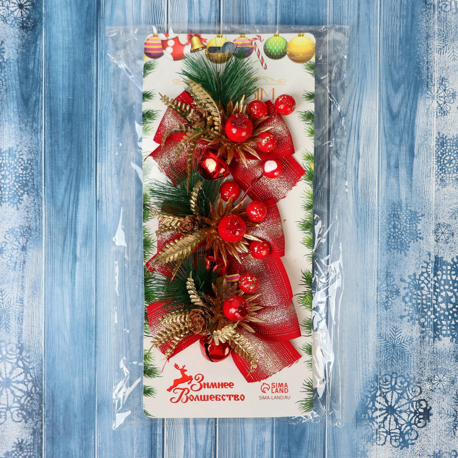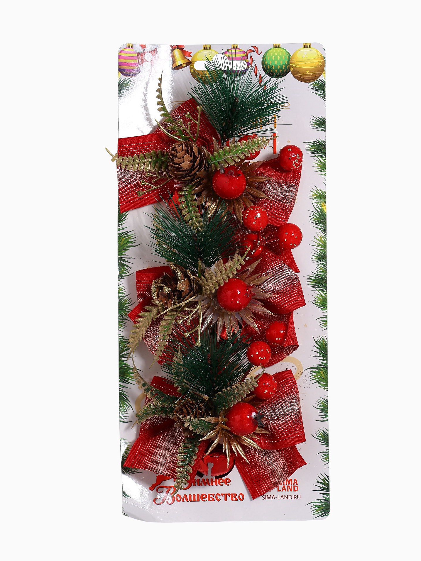 Ёлочные игрушки 3 шт. "Зимнее волшебство. Еловая композиция" пластик, бант классика, ягодки, 11x8 см, красный, 11x8 см., Зимнее волшебство, Китай