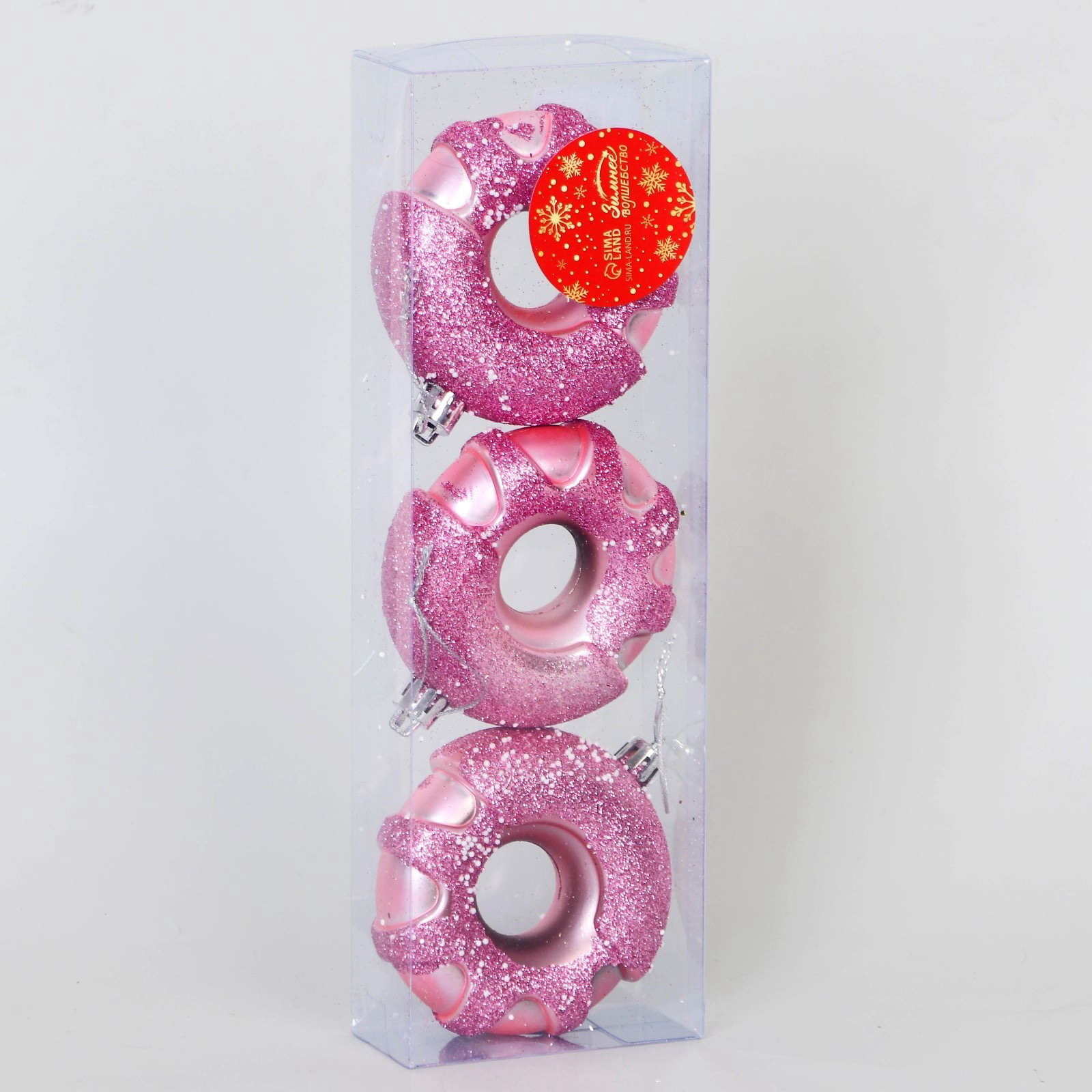 Ёлочные игрушки 3 шт. "Пончик праздничный" 7x8 см, сиреневый, 7x8 см., Зимнее волшебство, Китай
