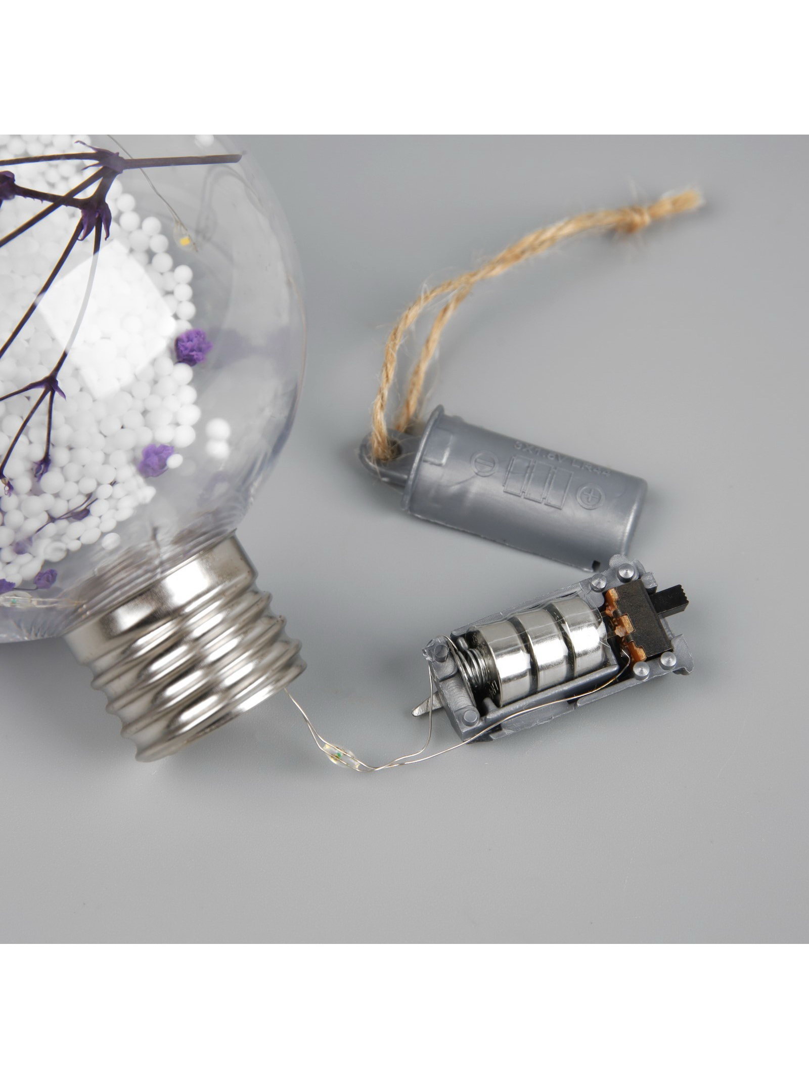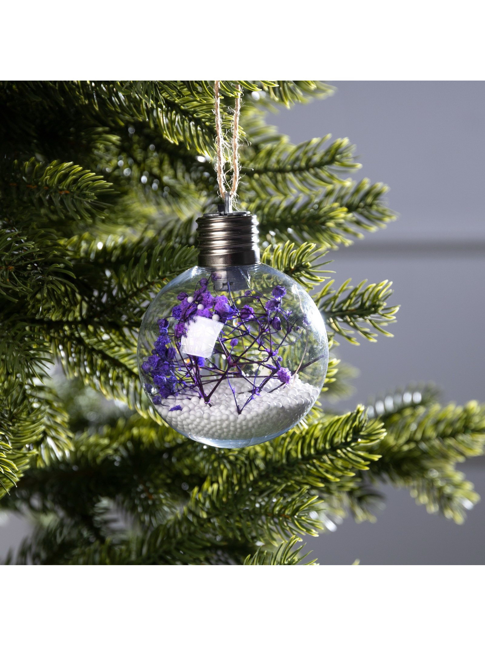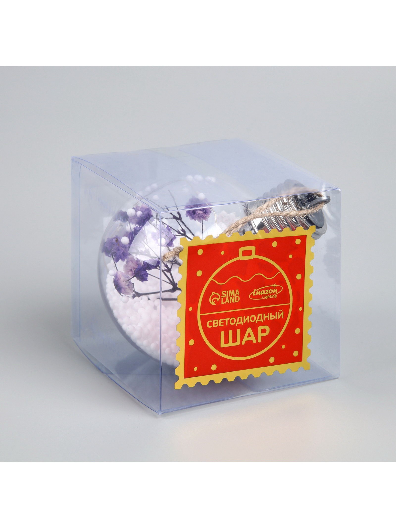 Ёлочный шар "Сиреневые сухоцветы", d=8 см, 5 LED, от батареек, свечение тёплое белое, 8x8x8 см., Luazon Lighting, Китай