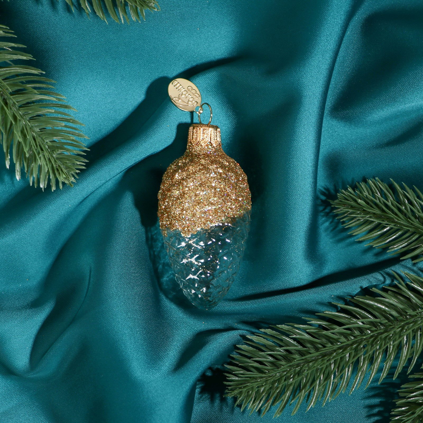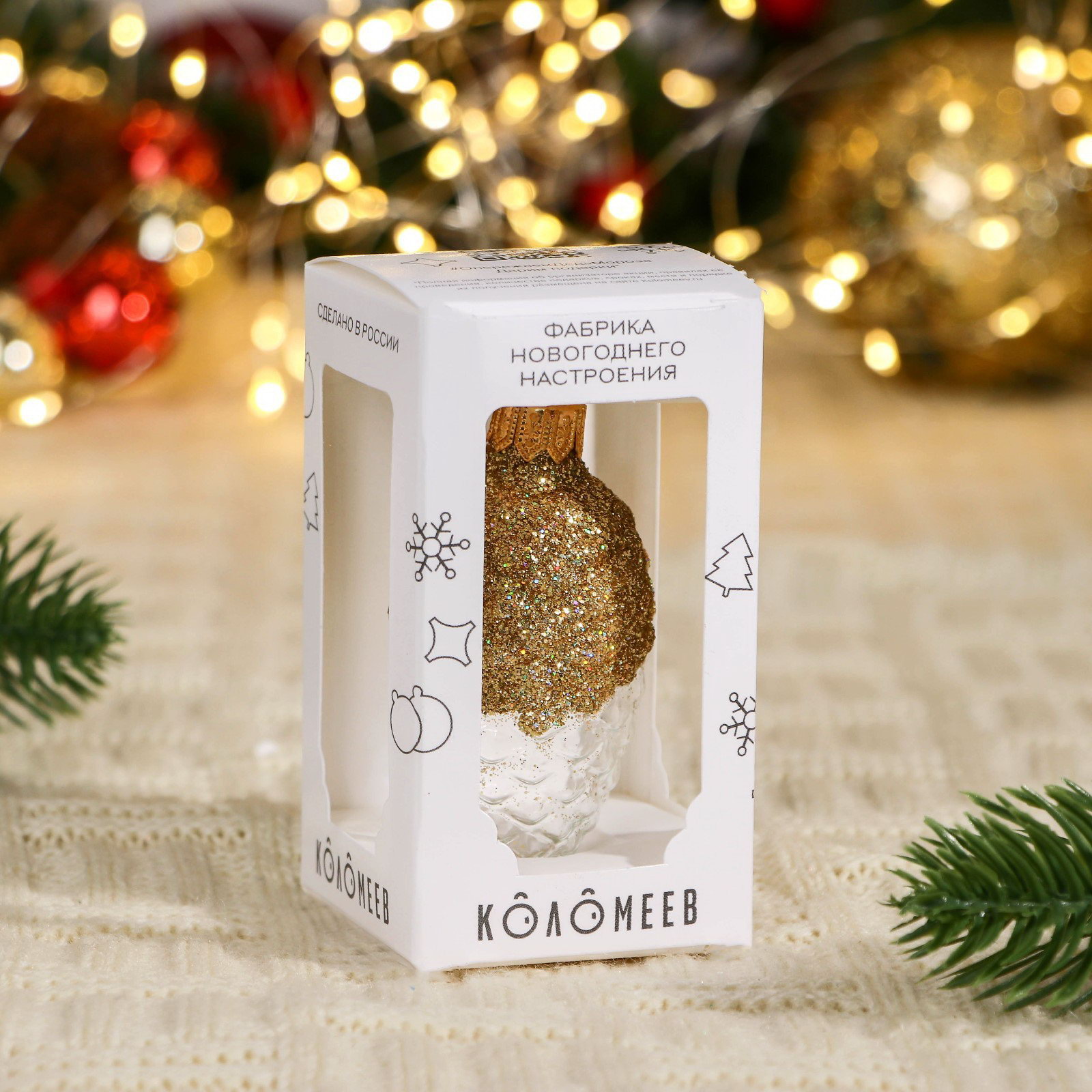 Ёлочное украшение "Шишка в снегу", прозрачная серия, золотая, в подарочной упаковке, h-8см, Россия