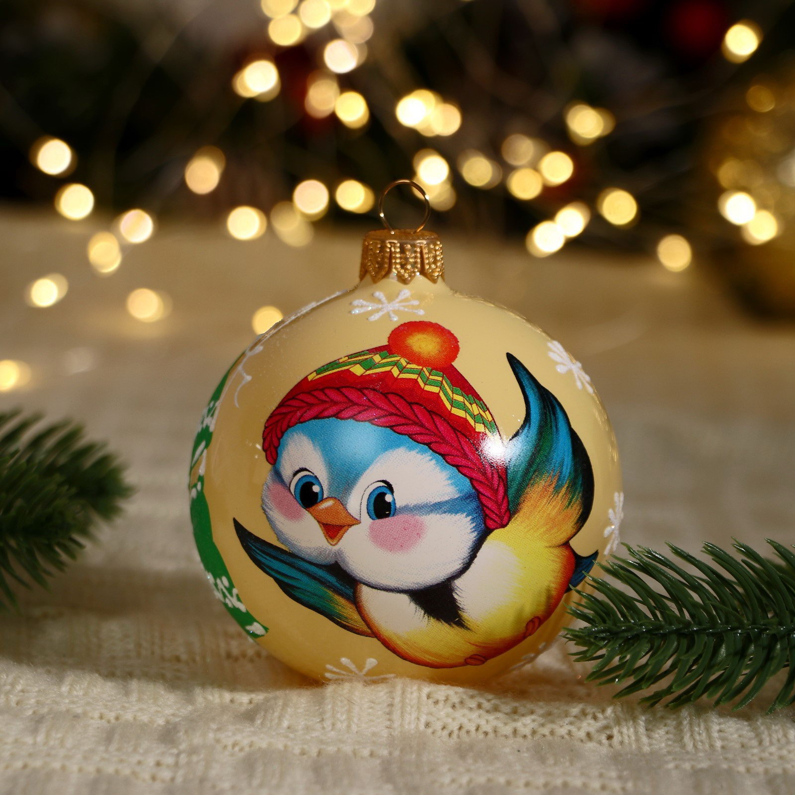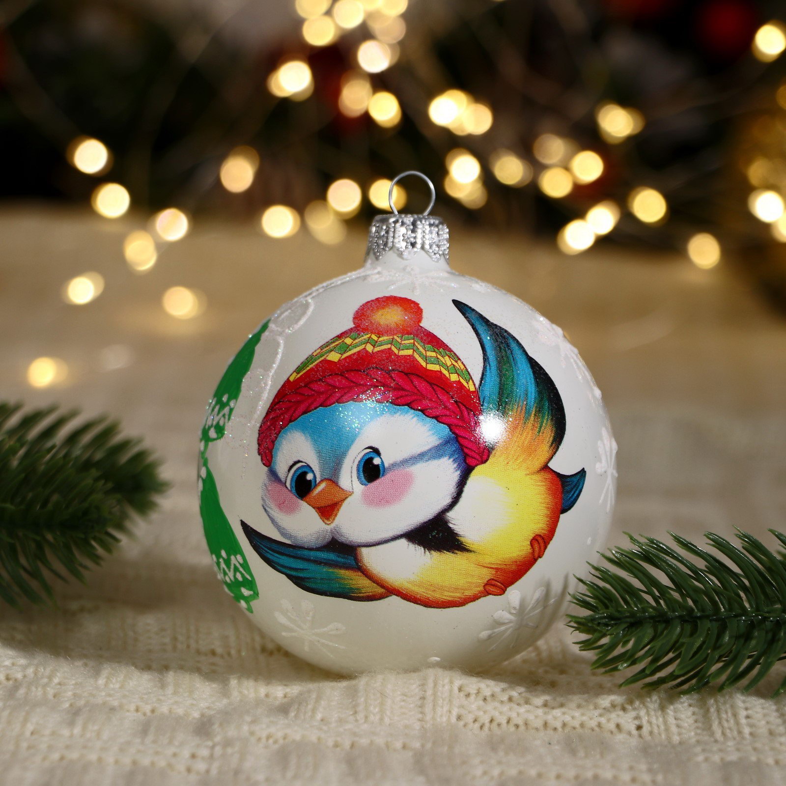 Шар "Синичка в шапочке" микс, d-8 см, в подарочной упаковке, КОЛОМЕЕВ, Россия