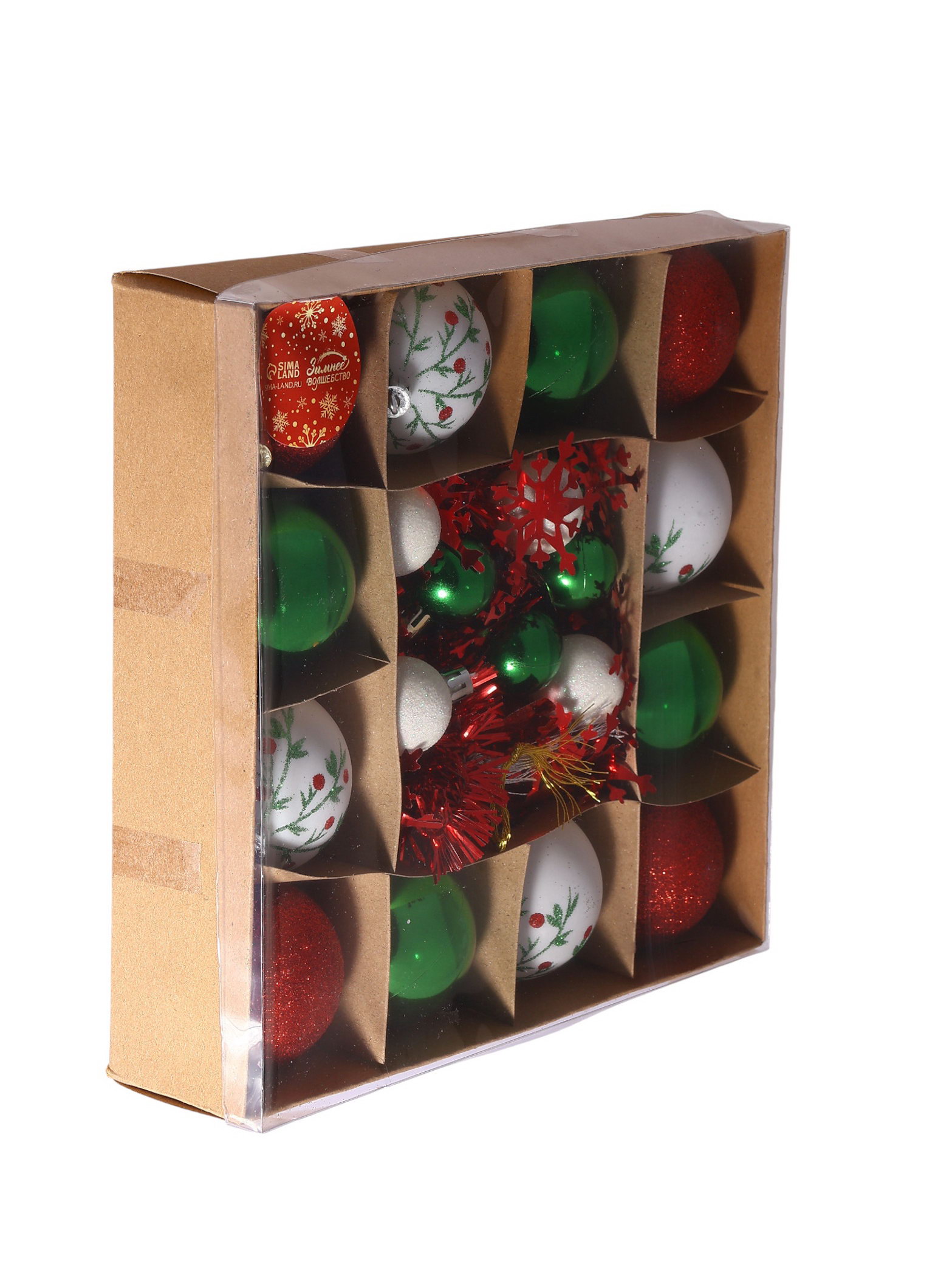 Ёлочные игрушки "Каникулы", шары новогодние, d=6 и 2.5 см, 21 шт., узоры + мишура 1 м, МИКС, 24x6x24 см., Зимнее волшебство, Китай