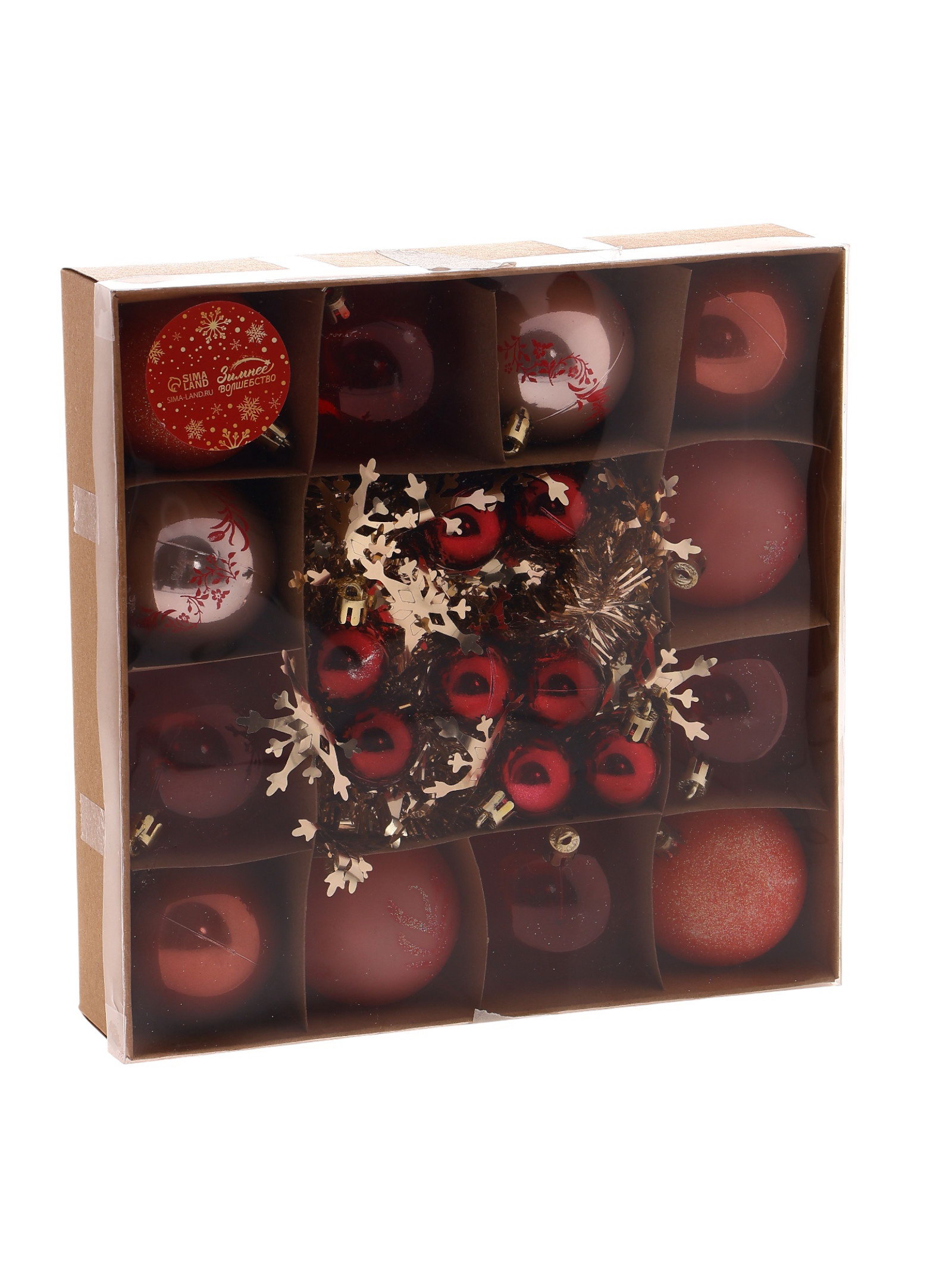 Ёлочные игрушки "Каникулы", шары новогодние, d=6 и 2.5 см, 21 шт., ассорти грация + мишура 1 м, МИКС, 24x6x24 см., Зимнее волшебство, Китай