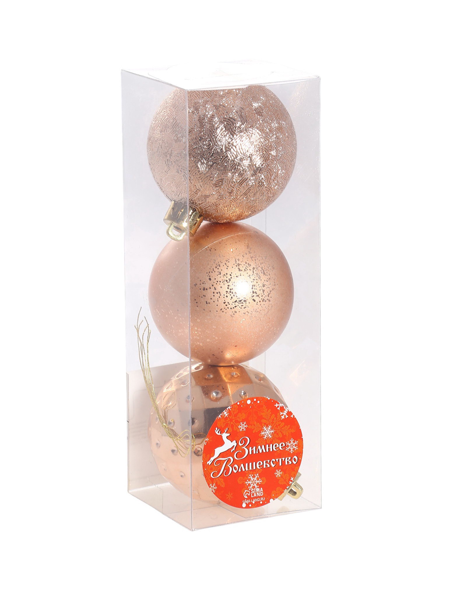 Ёлочные игрушки "Северное сияние", шары новогодние, d=6 см, набор 3 шт., классика, золото, 6x6 см., Зимнее волшебство, Китай